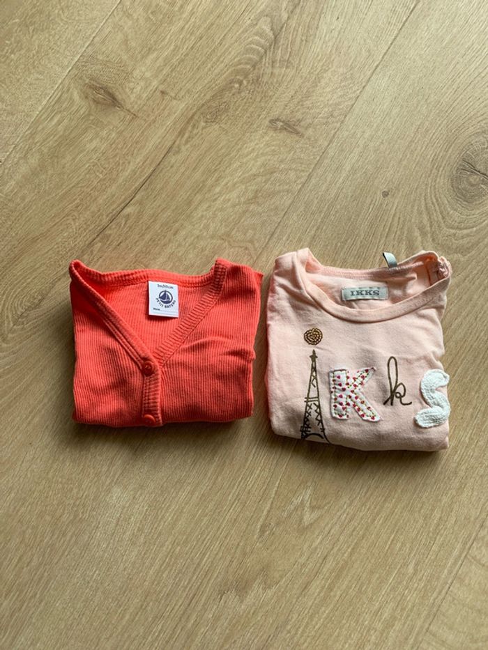 Lot bébé fille 3 mois 1 gilet fin corail petit bateau 1 teeshirt IKKS rose #lot3mois #enseble3moisfille #bebefille3mois #ikks3mois #petitbateau3mois #teeshirt3mois #gilet3mois