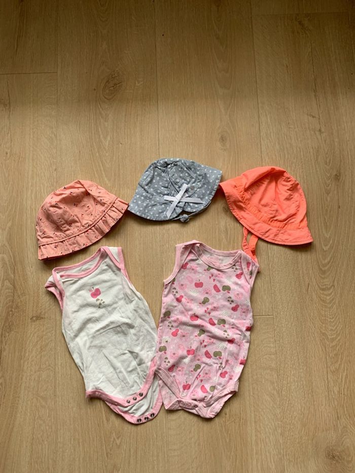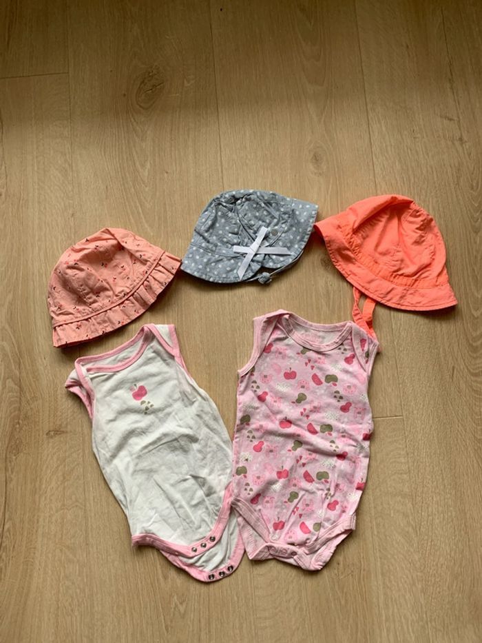 Lot bébé fille 6 mois 3 chapeau 1 cerise kiabi 1 bleu gris obaibi 1 corail 2 bodie Parfait état #lot6mois #lotfille6mois #chapeau6mois #bebefille6mois #bodie6mois #kiabi6mois #obaibi6mois