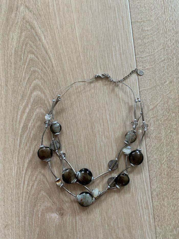 Collier 3 rangs perles grises Marque Cc Parfait état #bijoux #collier #perles