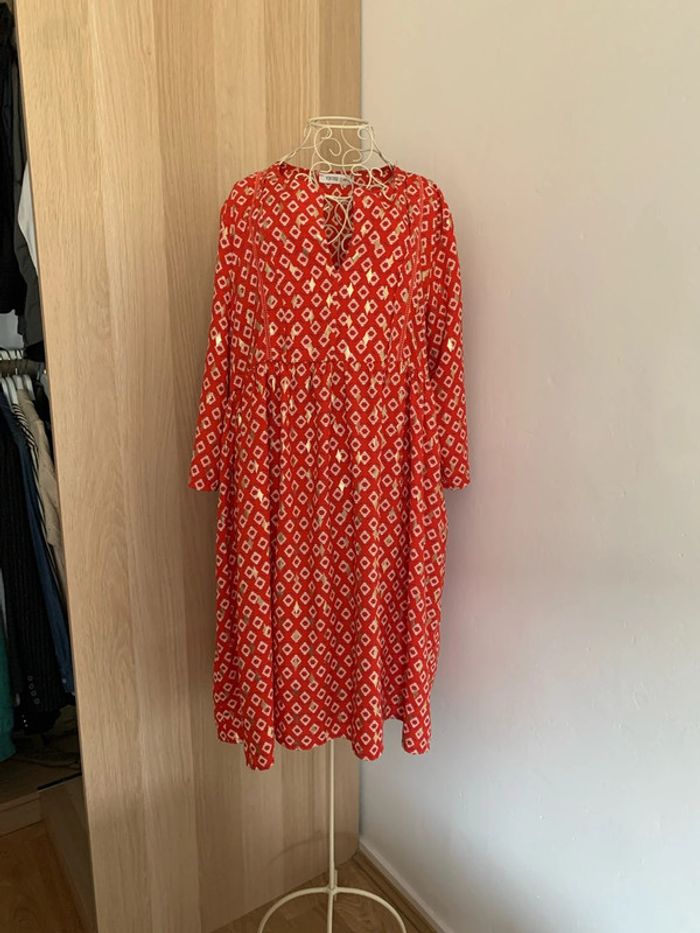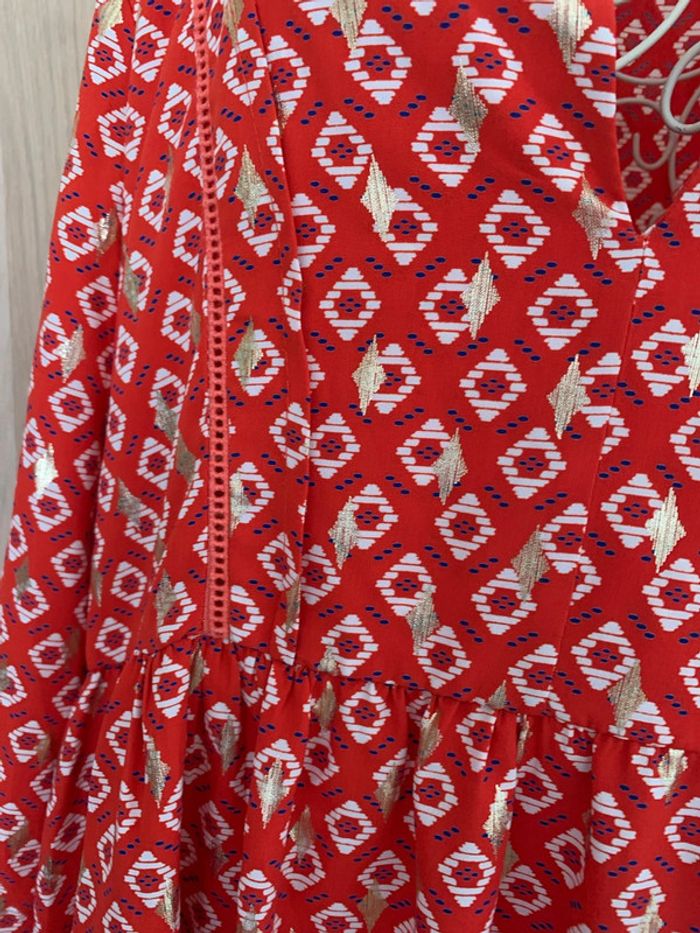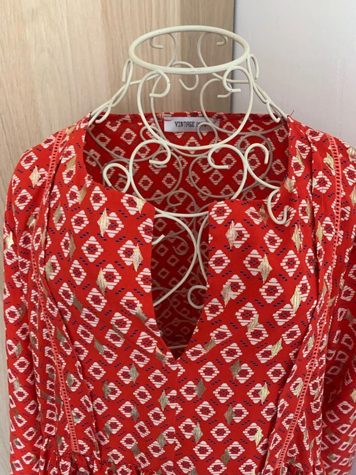 Jolie robe rouge orangé et doré Vintage love Agréable à porter Parfait état Taille 38/40 #femme38 #robe38 #été38 #vintagelove #robeété