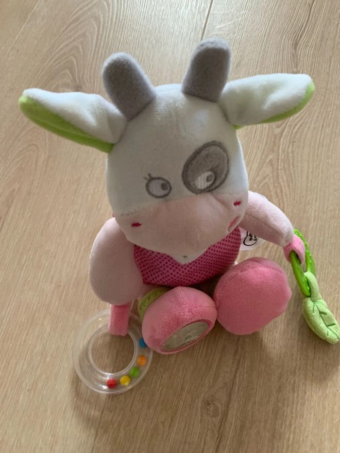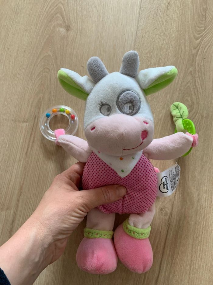 Peluche bébé vache avec hochet et anneau de dentition Mot D enfant #peluche#peluchebébé #vache #anneaudedentition #hochet #hochetbebe #motdenfant