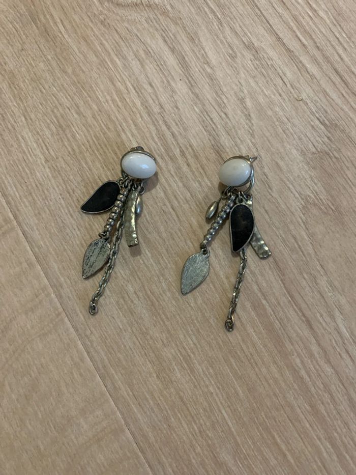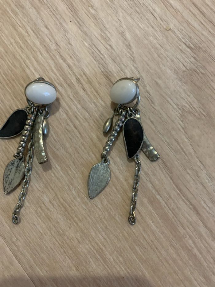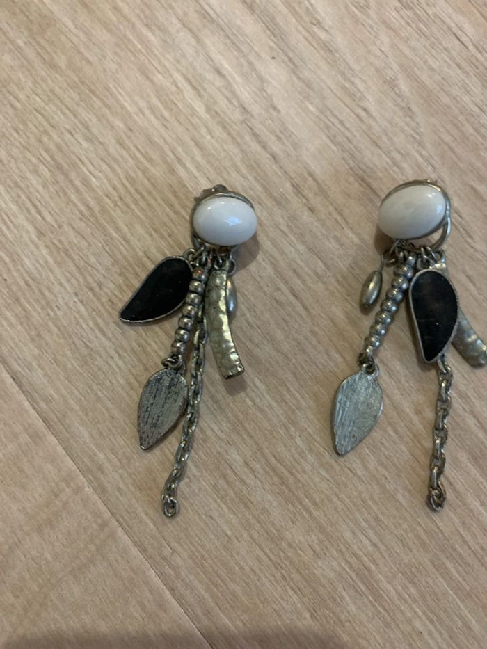 Jolie paire de boucles d’oreilles pendantes Métal noir et blanc #bouclesdoreilles #pendantes #rock #métal #bijoux