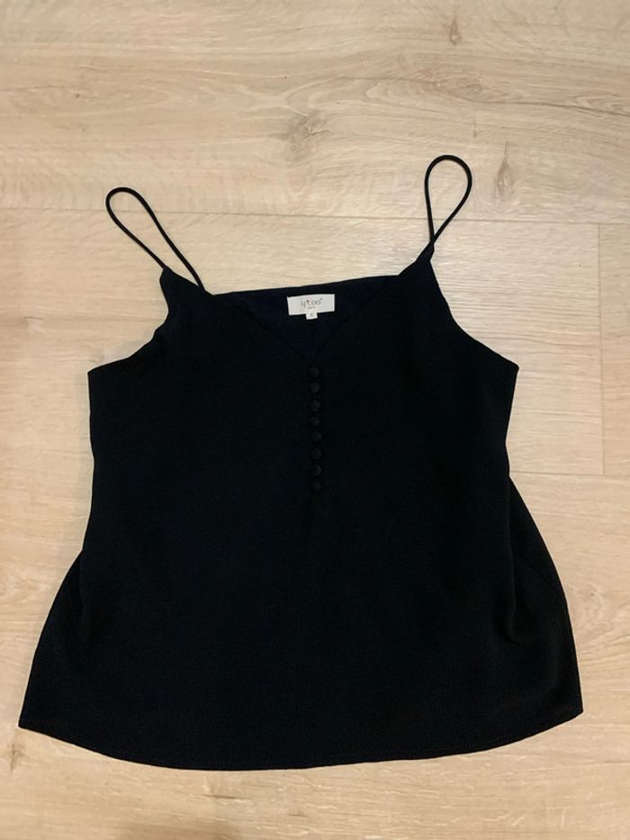 Débardeur Ycoo Noir bretelles fines Décolleté et boutons sur le devant Viscose #femme36 #débardeur36 #top36 #top38 #viscose