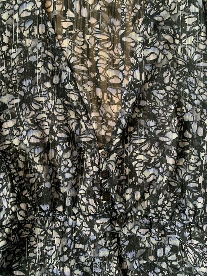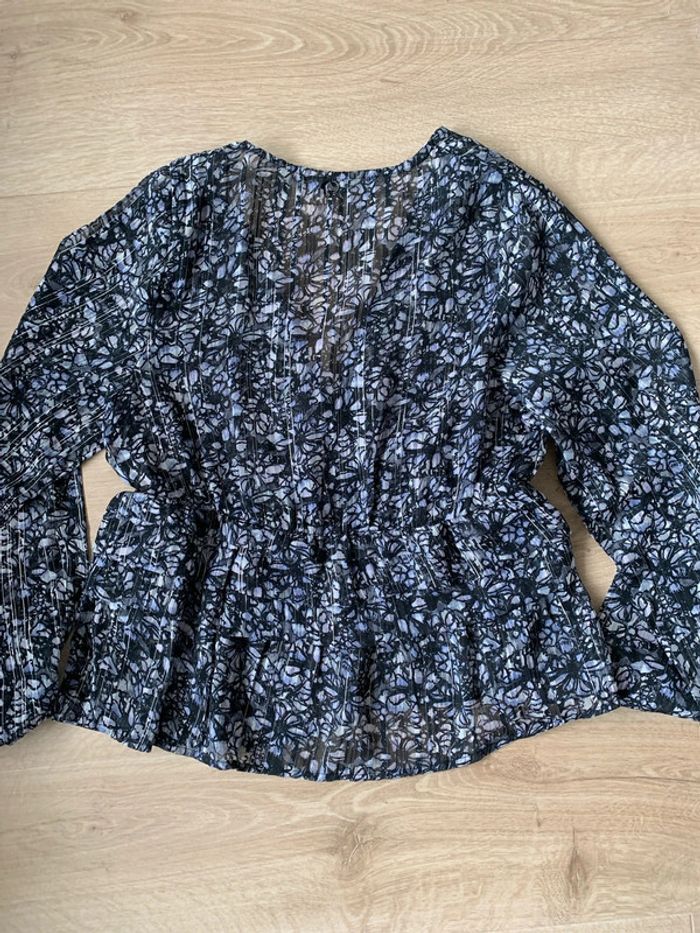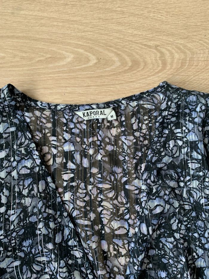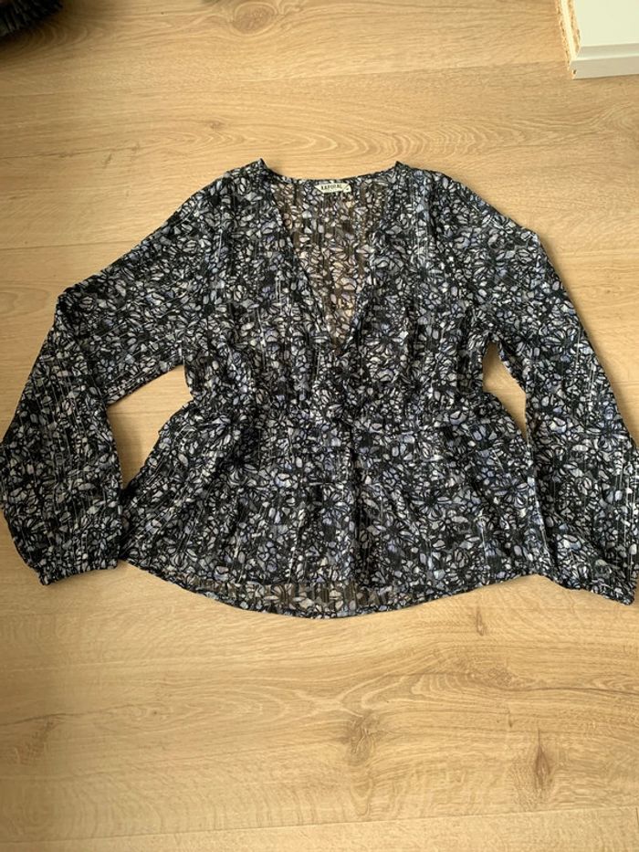 Blouse fleuri décolletée Kaporal Taille 38 Cintrée élastique à la taille Fibre métallique argenté #kaporal #blouse38 #femme38 #metalic #liberty