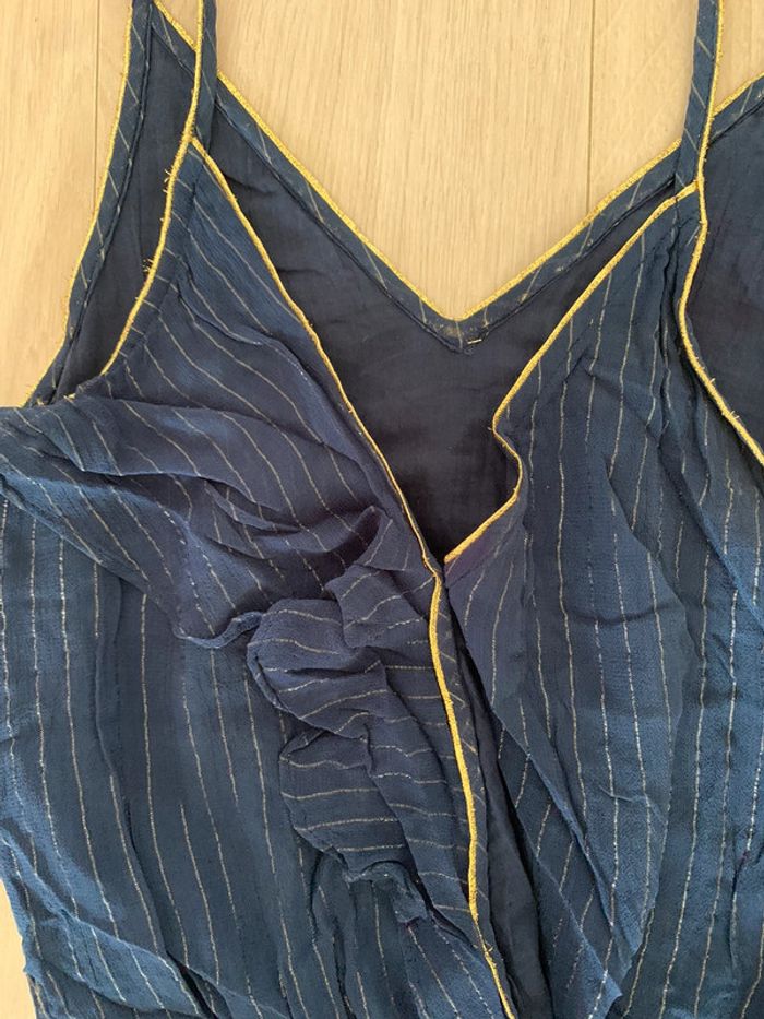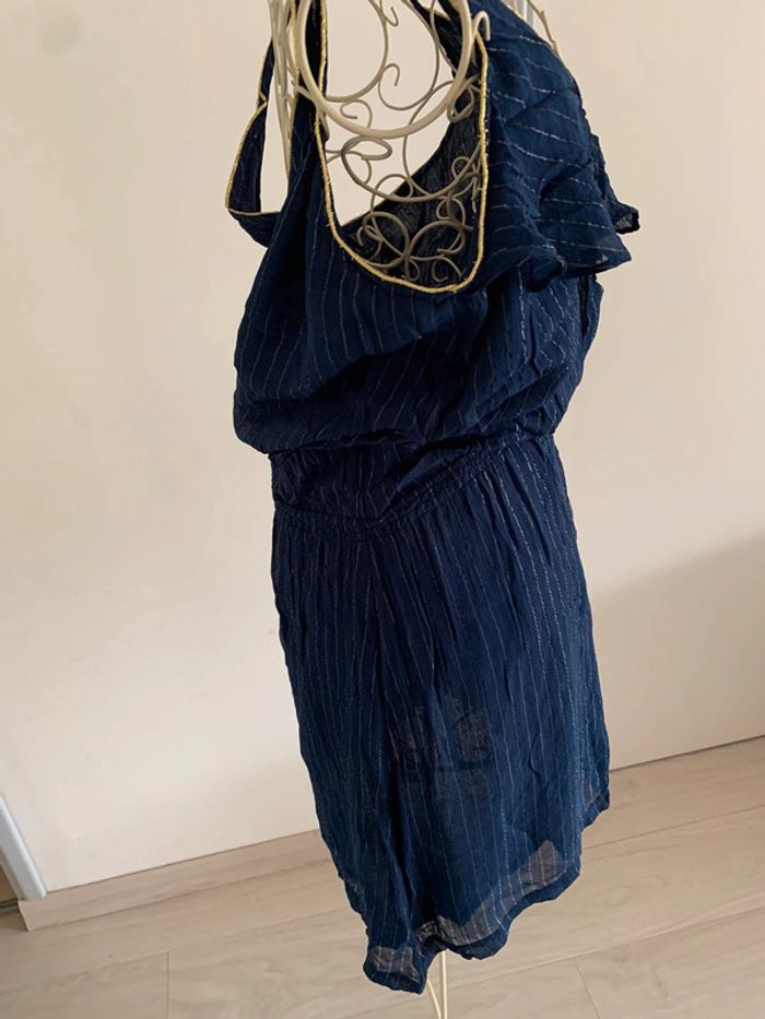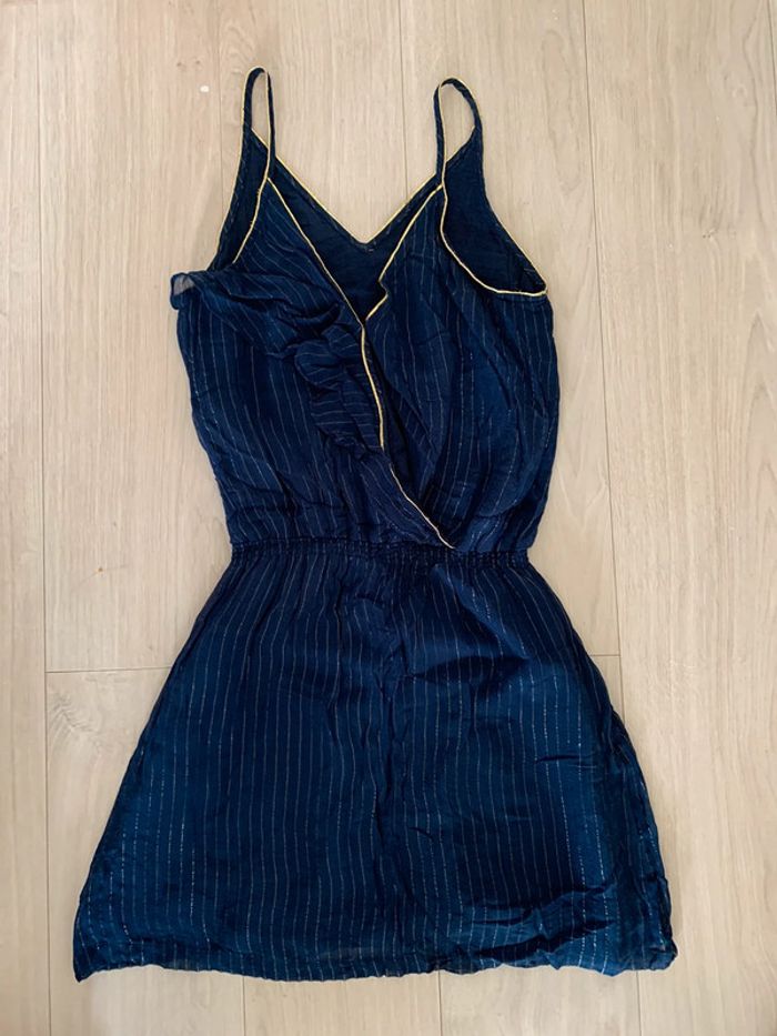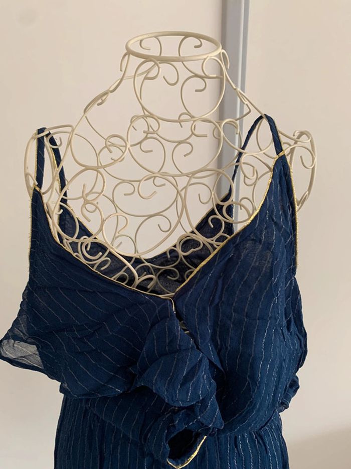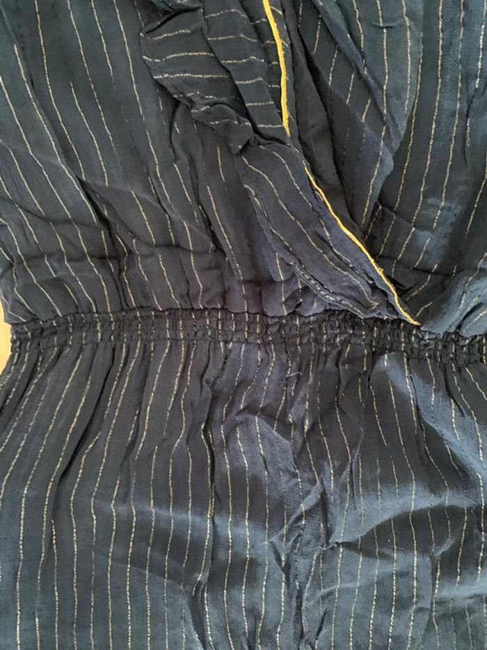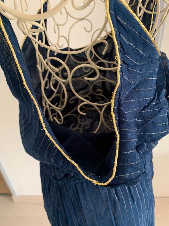 Robe décolletée viscose Marine et doré Taille cintrée élastique Taille S #femme36 #robe36 #robedecolletée #doré #été36