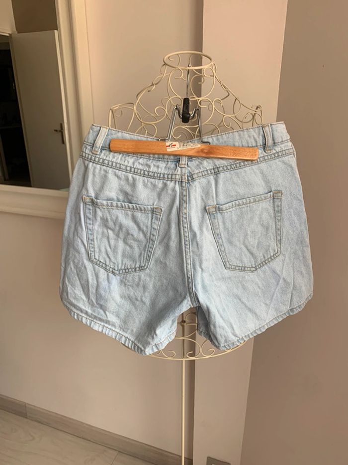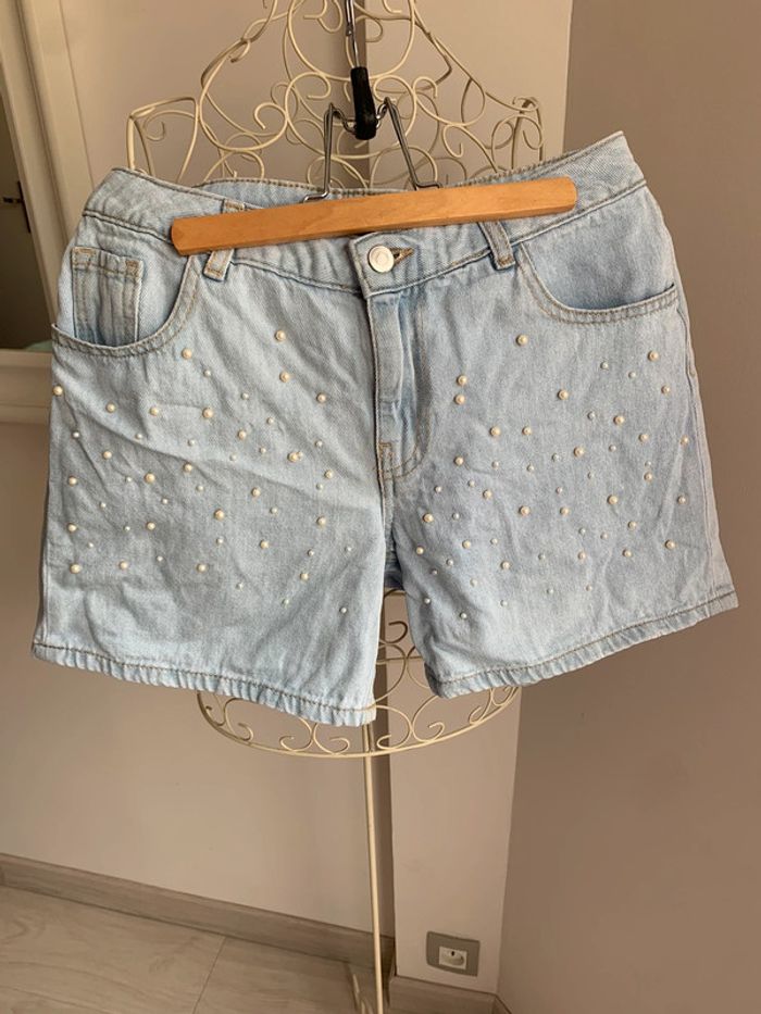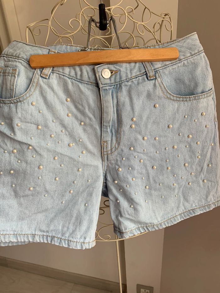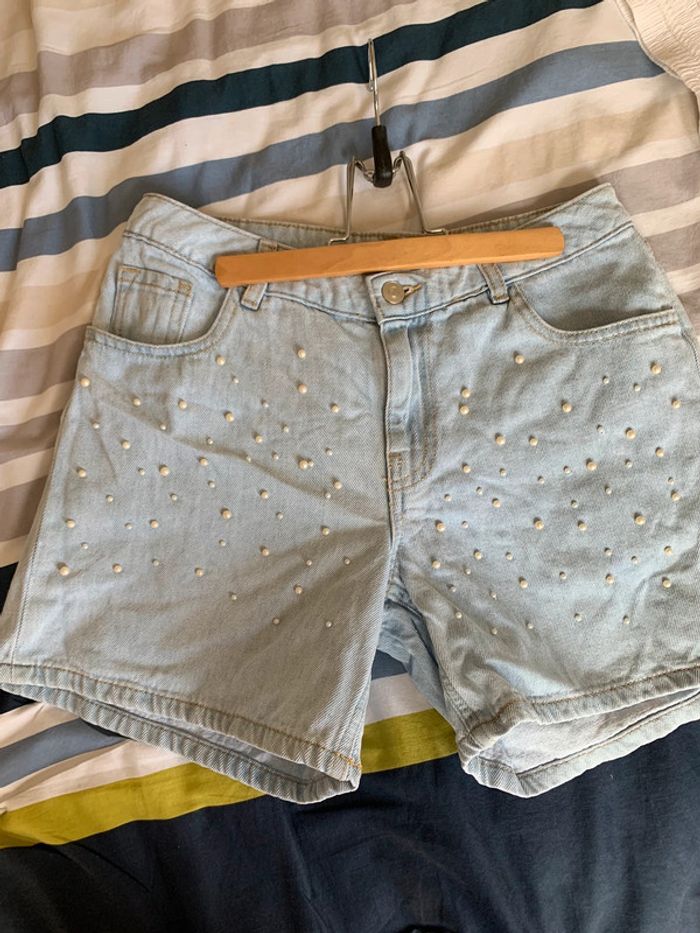 Short en jean bleu clair Etam Taille S Avec des perles sur le devant #femme36 #été36 #short #short36 #shortjean36 #etam #etam36 #perles #100coton