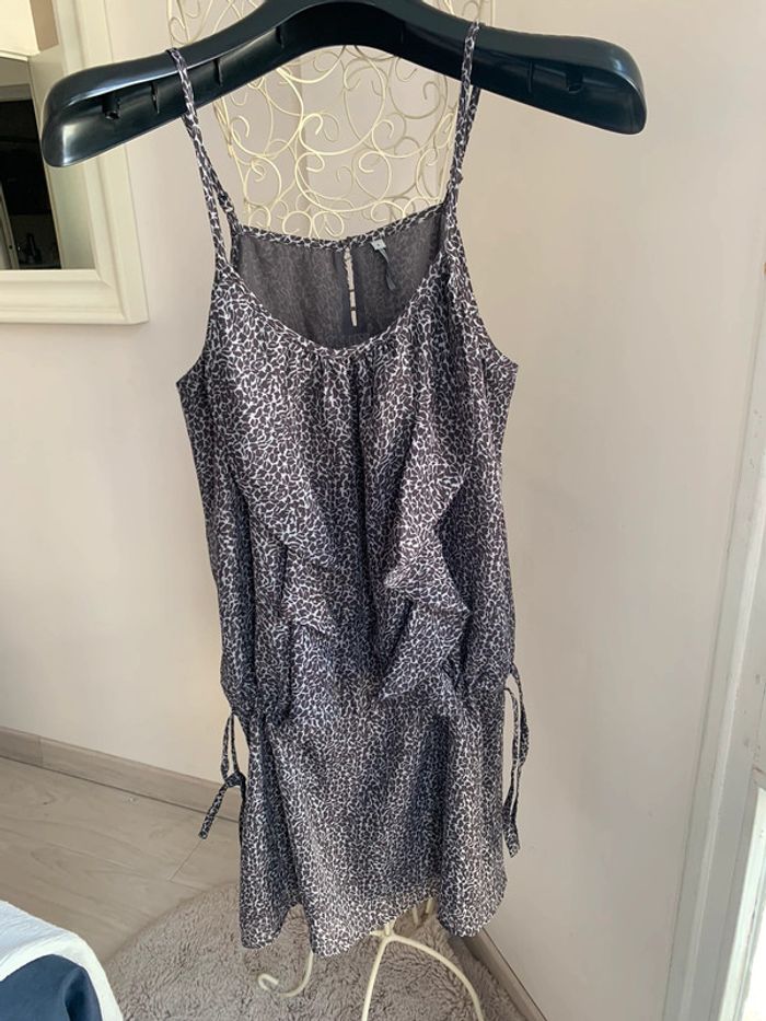 Jolie robe été marron gris Sud Express Taille L Ceinture intégrée pour cintrer la robe #sudexpress #sudexpress40 #robe40 #robeété #robefluide