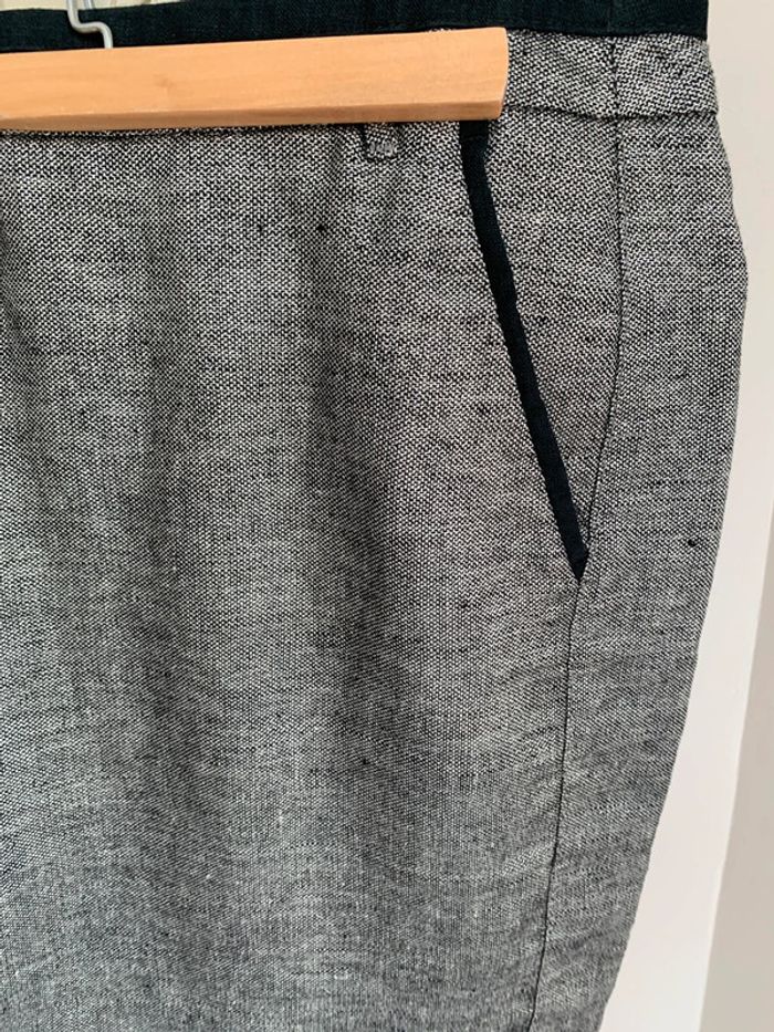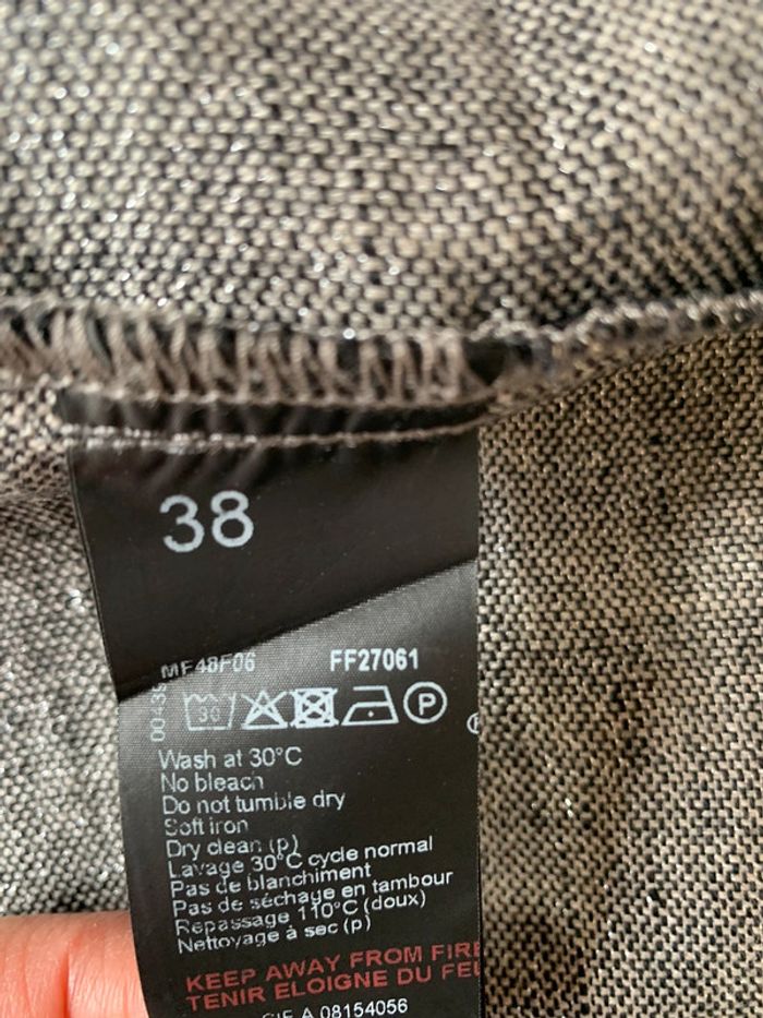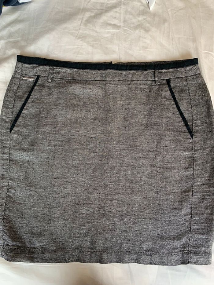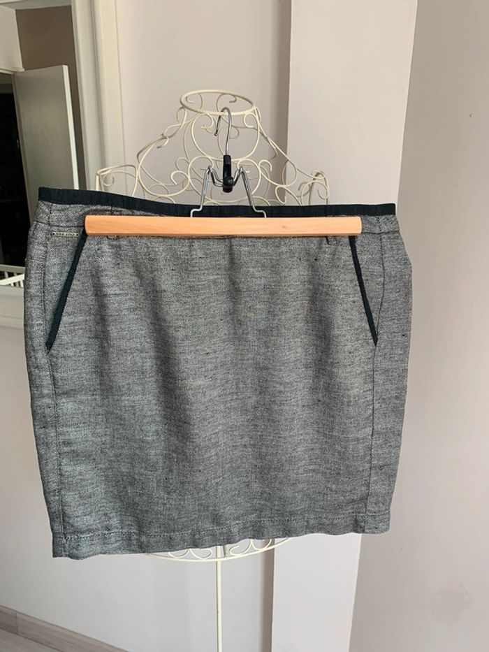 Jupe en lin argenté One step Taille M Coupe droite avec 2 poches sur les côtés Au dessus des genoux 44cm Grise avec fils métallisé argenté #onestep #onstep38 #argenté