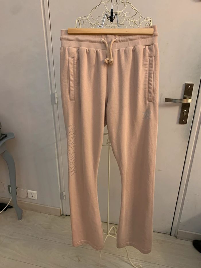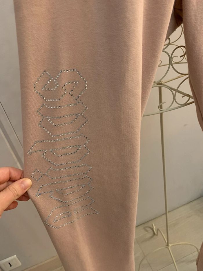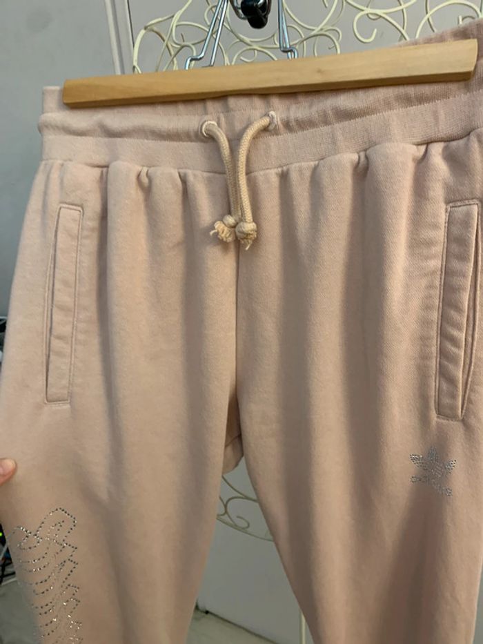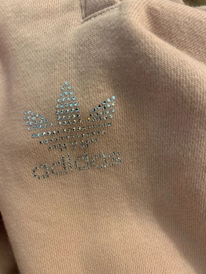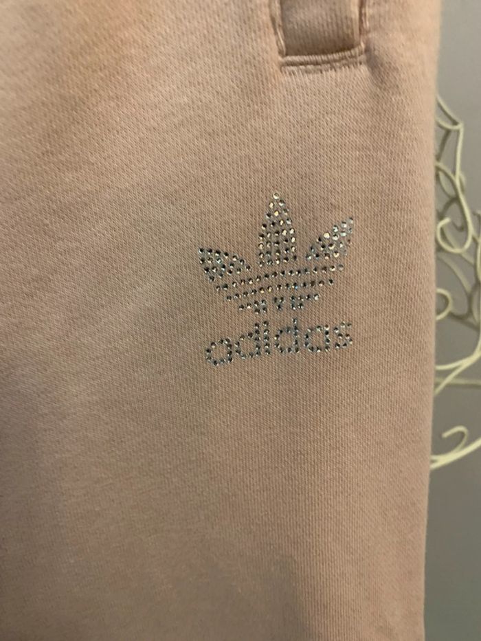 Bas jogging Adidas Rose poudré avec logo Adidas en strass et inscription Adidas en strass sur la jambe droite ( manque 1 seul) Taille S #adidas #joggingadidas #strass #jogging36 #adidassport #fashion #pink