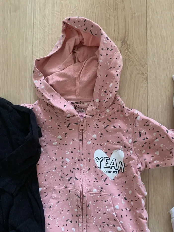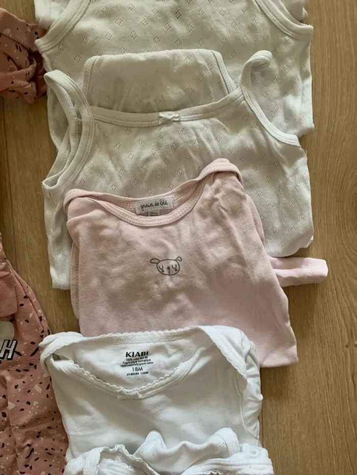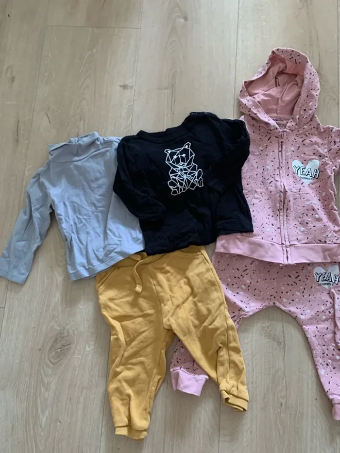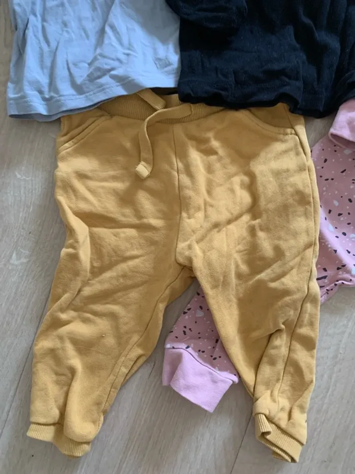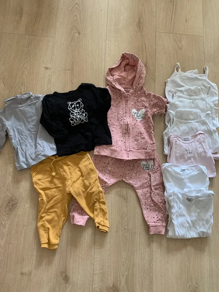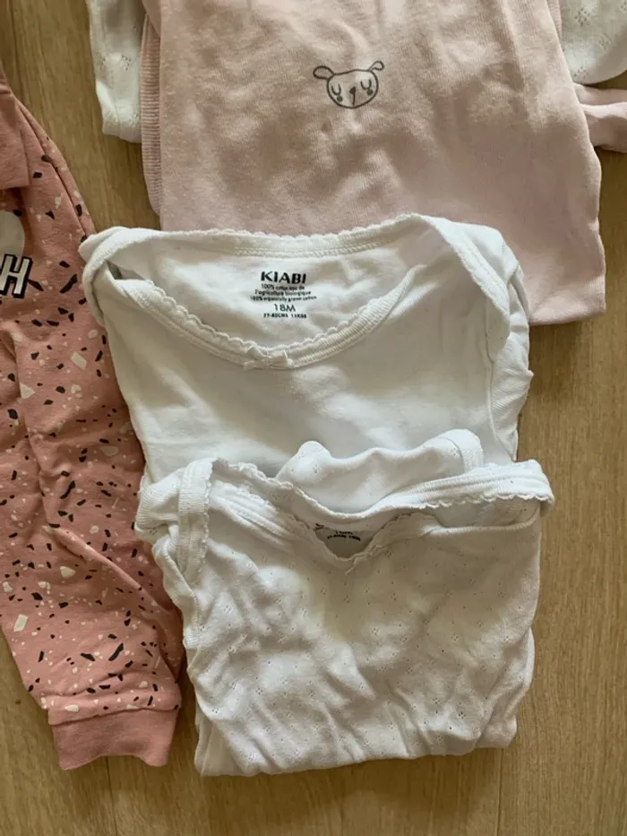 Lot bébé 18 mois idéal crèche 1 jogging rose complices 1 bas jogging moutarde kiabi 2 tee-shirts ml complice et Vertbaudet 6 bodies #lot18mois #lotcrèche #bebefille18mois #complices #kiabi18mois #bodies18mois