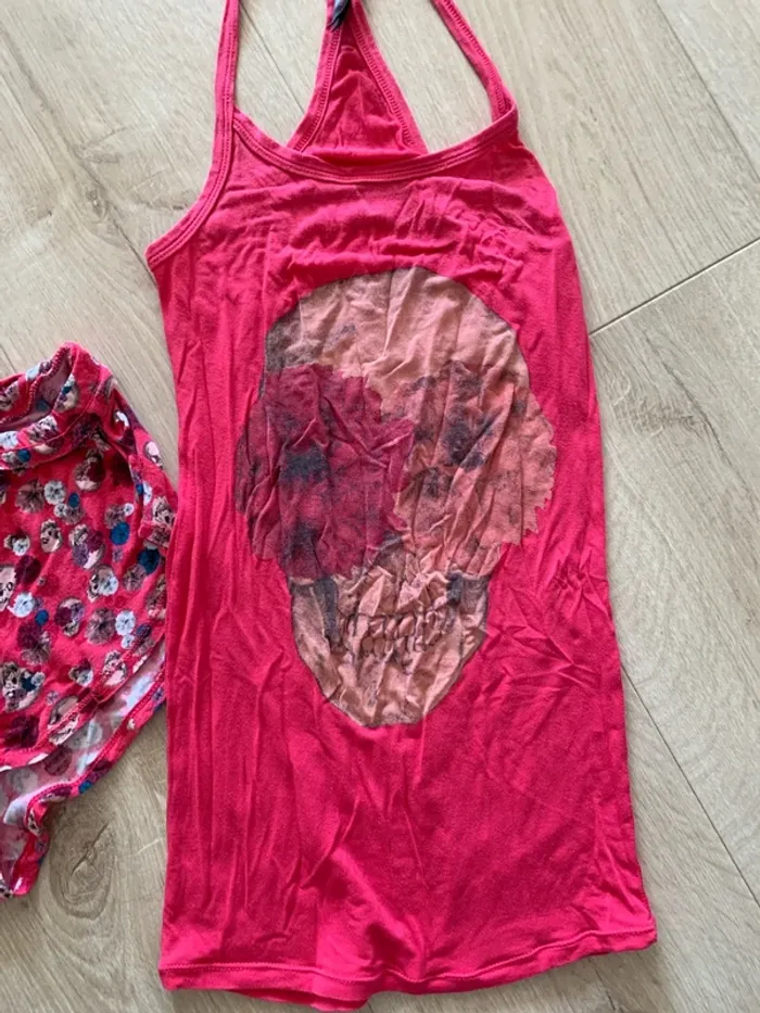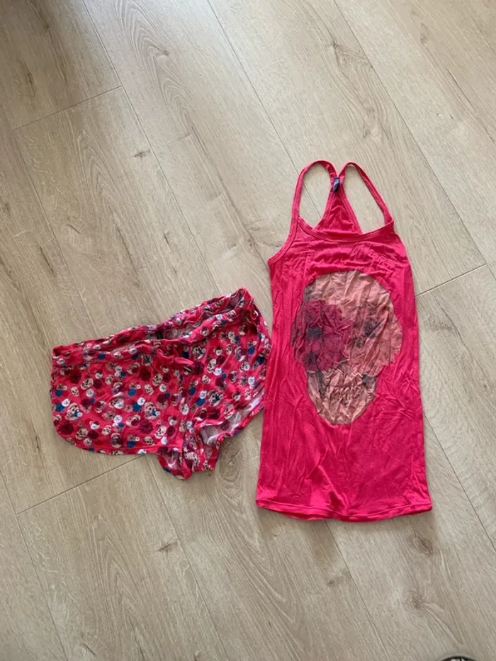 Pyjama short été Undiz Taille S/M Rose motif tête de mort #undiz #femme38 #femme36 #été36 #pyjamaete #rock #ensembleundiz