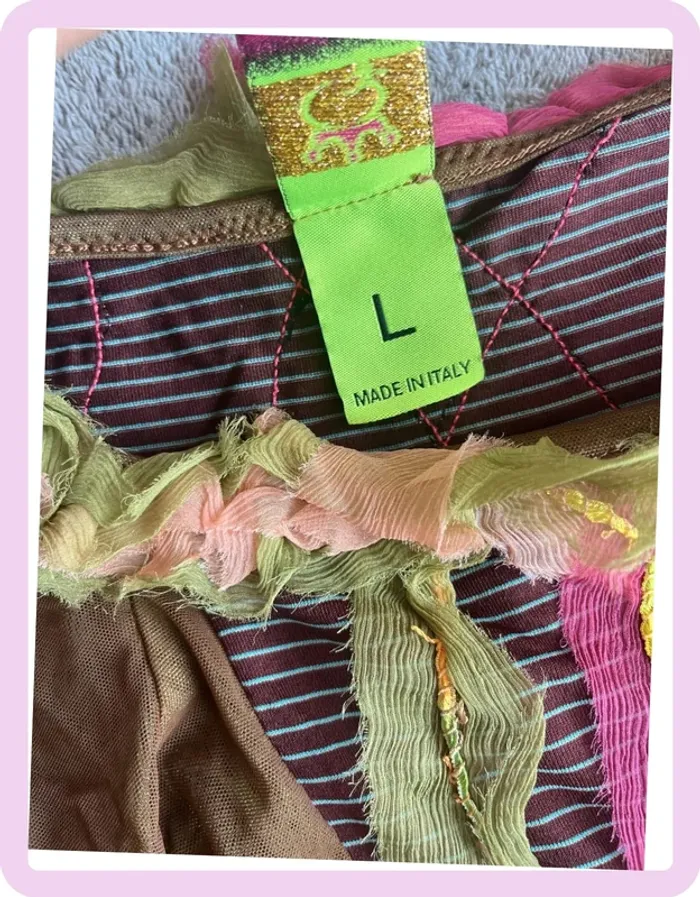 Faites entrer la créativité italienne dans votre dressing avec ce haut original Save The Queen!. Sa base dans les tons marron/kaki est joliment réhaussée de touches de rose, pour un contraste à la fois doux et affirmé. Une pièce au design subtil mais résolument artistique. ✨ Caractéristiques : Marque : Save The Queen!, célèbre pour ses créations originales made in Italy Taille : L Coloris : marron/kaki avec accents roses Manches mi-longues, coupe légèrement fluide Matière : 90 % Polyamide, 10 % Élasthanne → confortable, extensible et respirant Idéal pour apporter une note créative à un pantalon sobre ou une jupe unie Design artistique et féminin, fidèle à l’univers théâtral de la marque 🎨 Un haut qui allie confort et style expressif, parfait pour celles qui aiment les pièces rares et affirmées. Pour les autres articles : #HautFemmeLrbspauline #savethequeen #hautfemme #tailleL #hautkaki #hautcoloré #modeoriginale #hautfantaisie #polyamide #modemadeinitaly #styleitalien #hautcréateur #hautmarron #touchesderose #topunique #modeartistique #manchesmoyennes #hautdesigner #lookféminin #savethequeen #artwear #sizeL #coloreddetails #brownandpink #designerfashion #womensfashion #statementtop #polyamideblend #creativeclothing #boldstyle #uniqueoutfit #italianbrand #midlengthsleeves #expressivestyle #fashionforward #bohochic #femininetop #reussesrbspauline #reussesrbspaulineDA