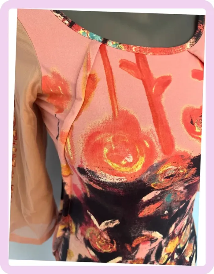 🌺 T-shirt Save The Queen – Taille L – Rose & noir avec manches tulle beige 🌺 - photo numéro 4