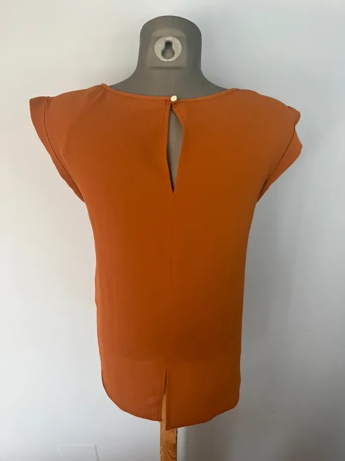 Blouse moutarde Yessica taille M/L – manches courtes, coupe asymétrique avec ouverture - photo numéro 4