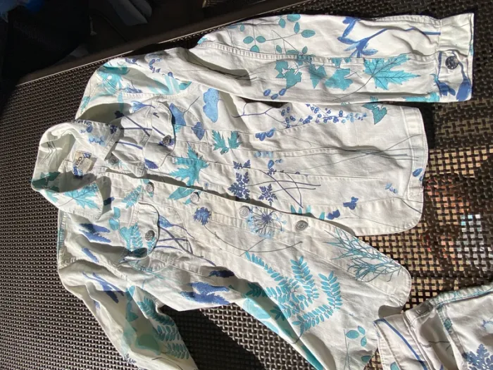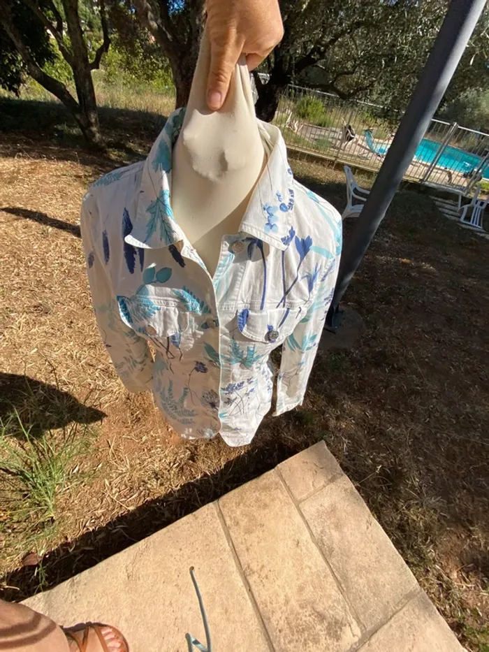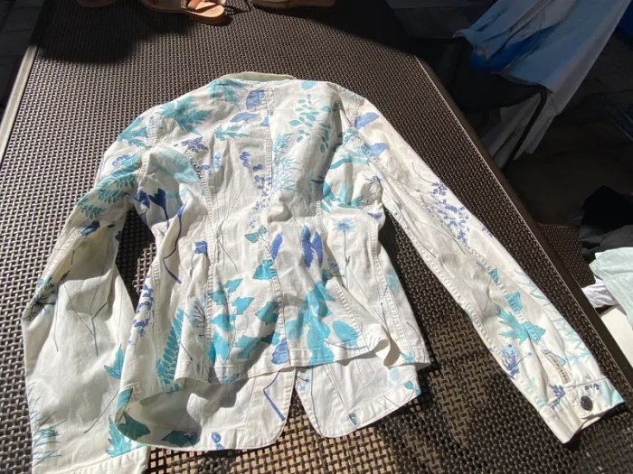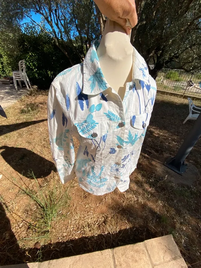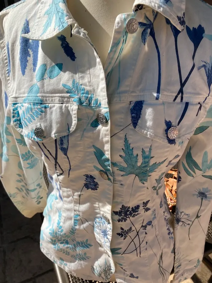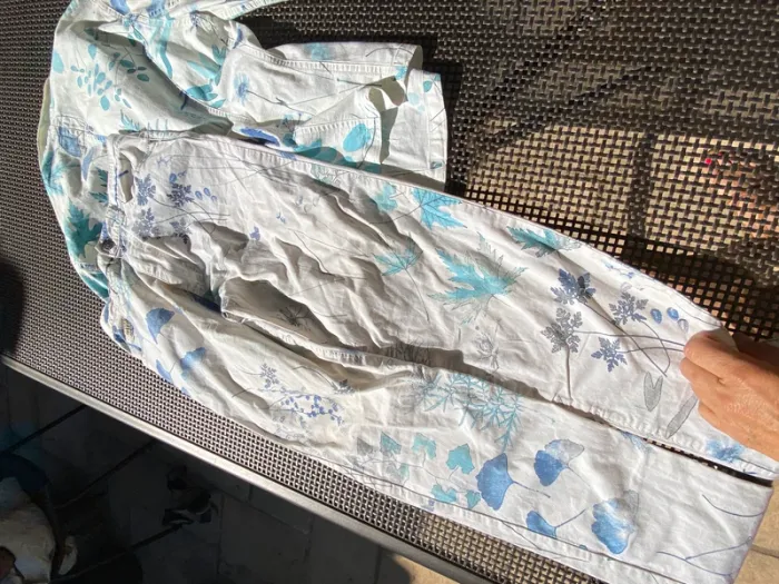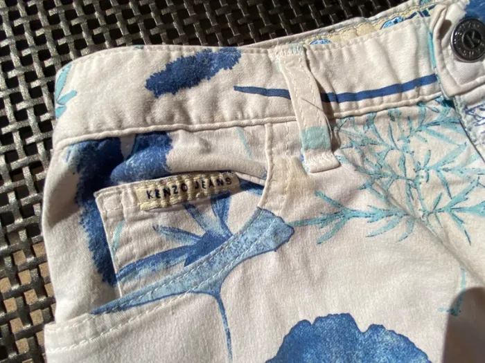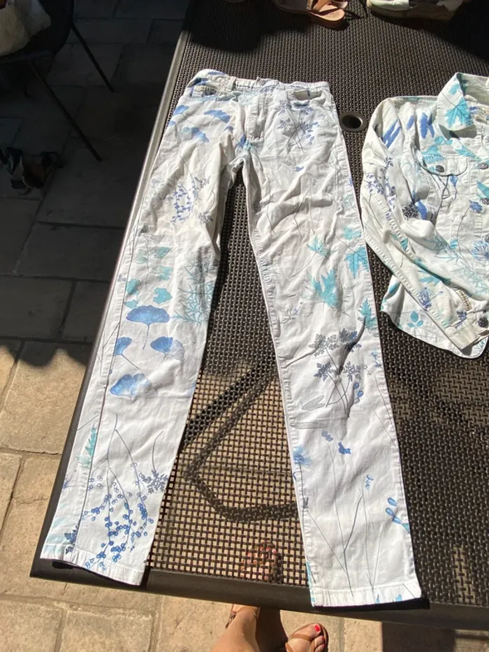 Très bel ensemble en jean blanc, fleuri, Kenzo, 40 42