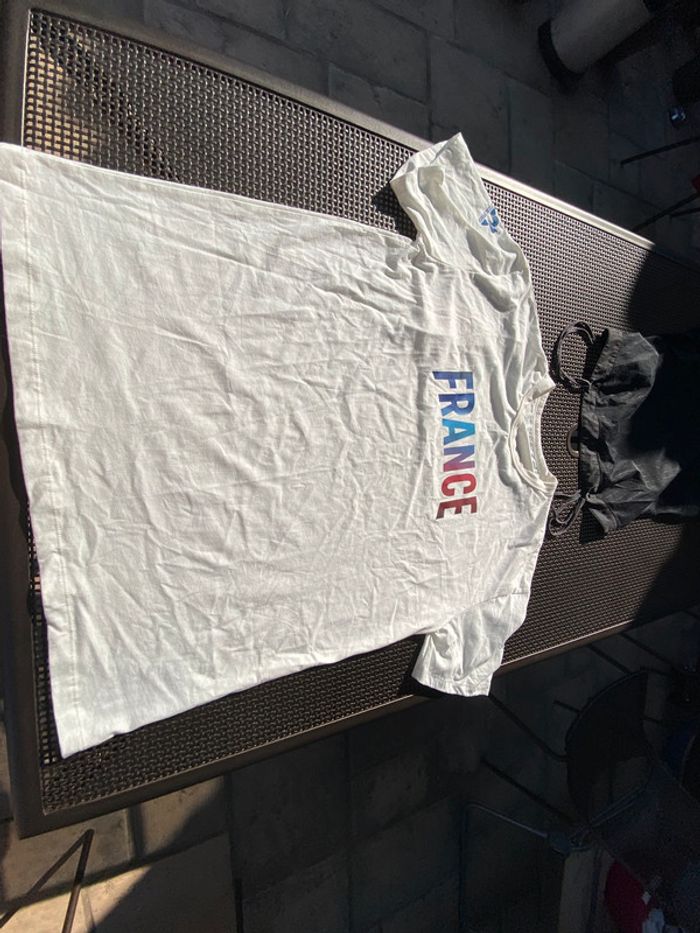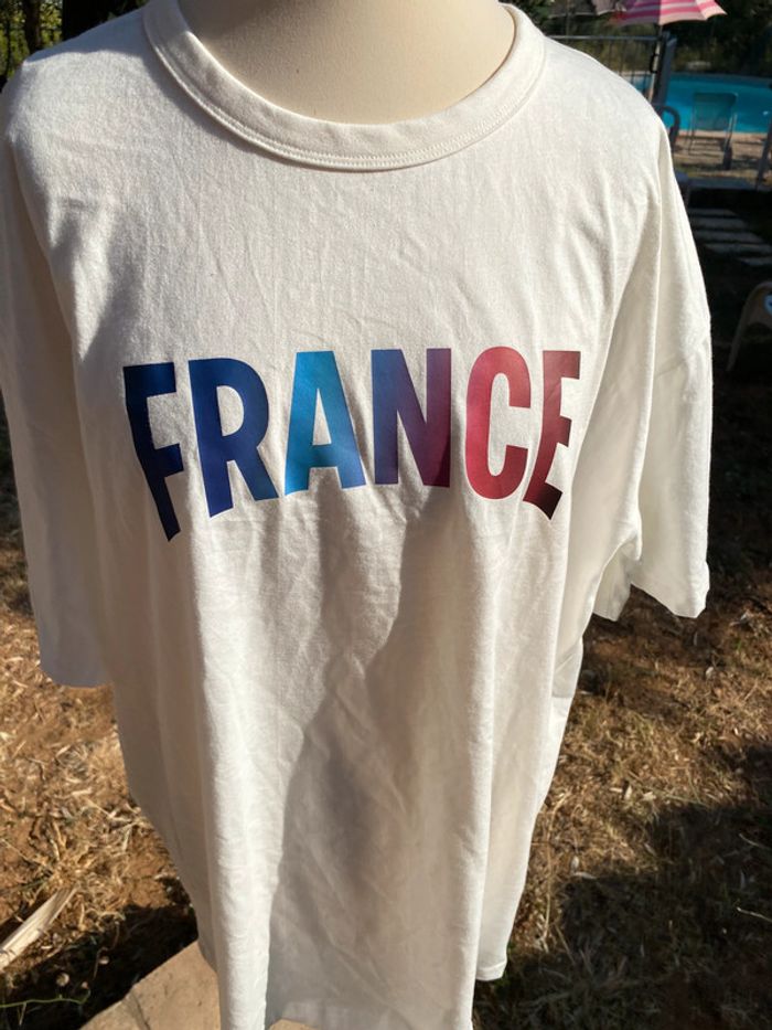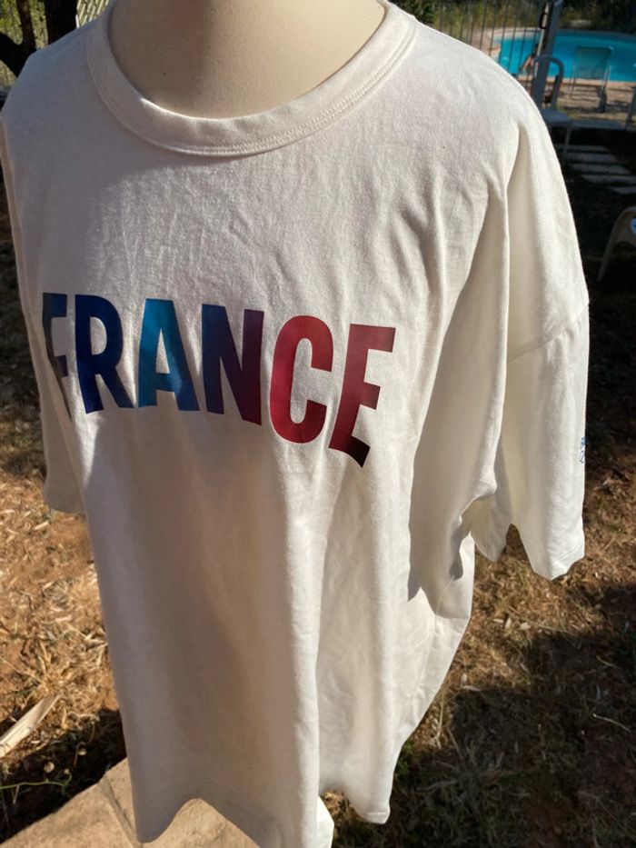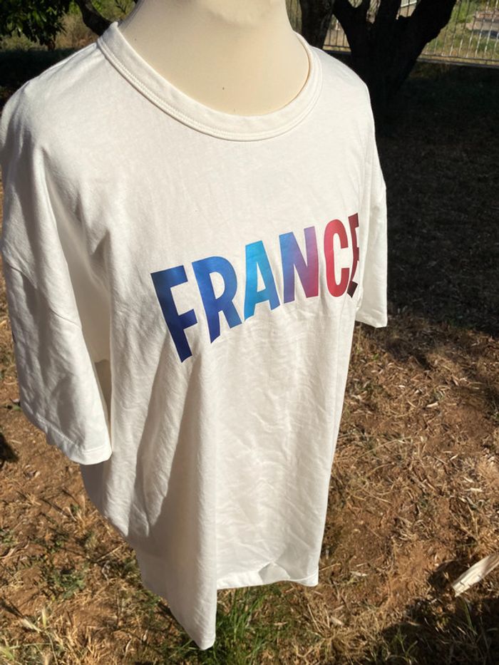 T-shirt, le coq sportif, couleur blanc, crème imprimée, bleu, blanc rouge au couleur de la coupe des JO