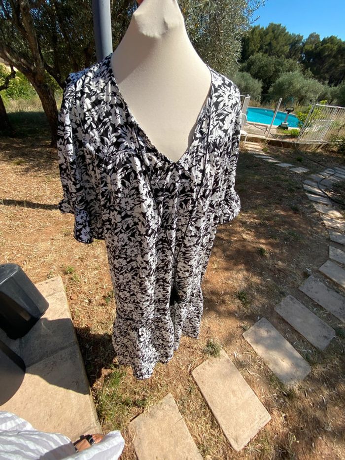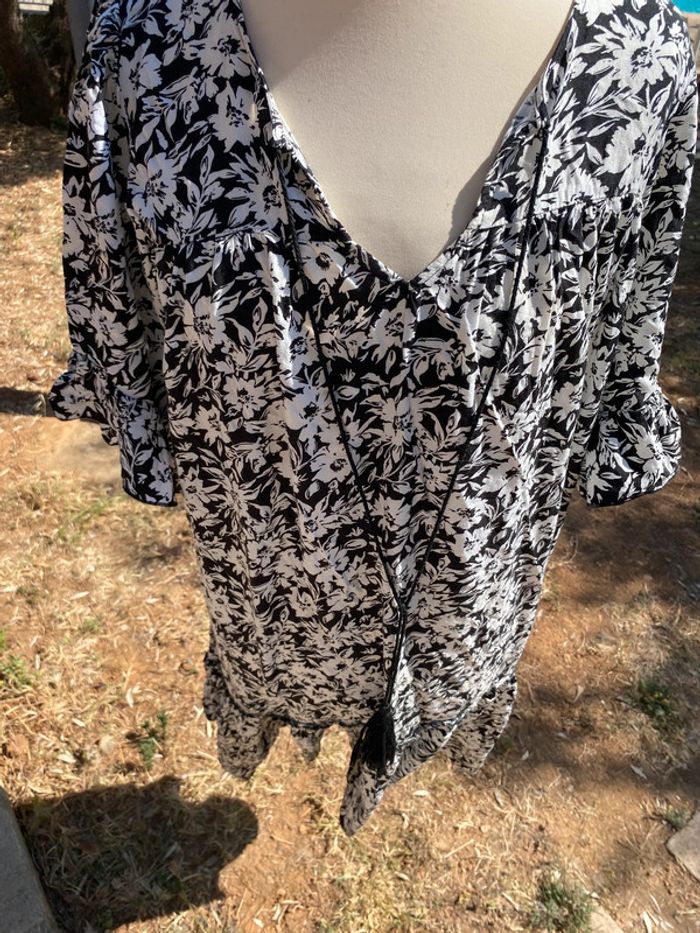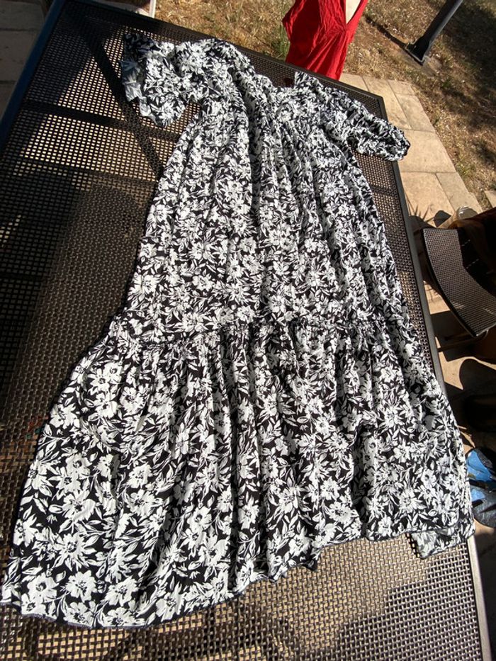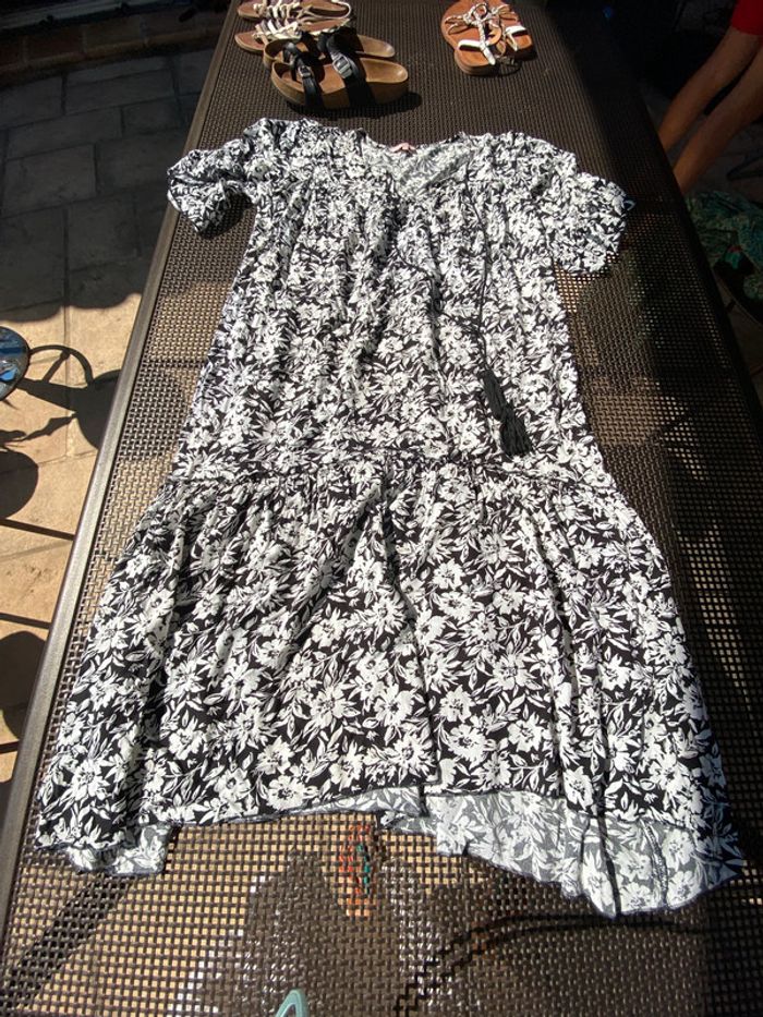 Belle, robe imprimée, fleuri, noir et blanc. Taille unique, idéal du 40 au 44.