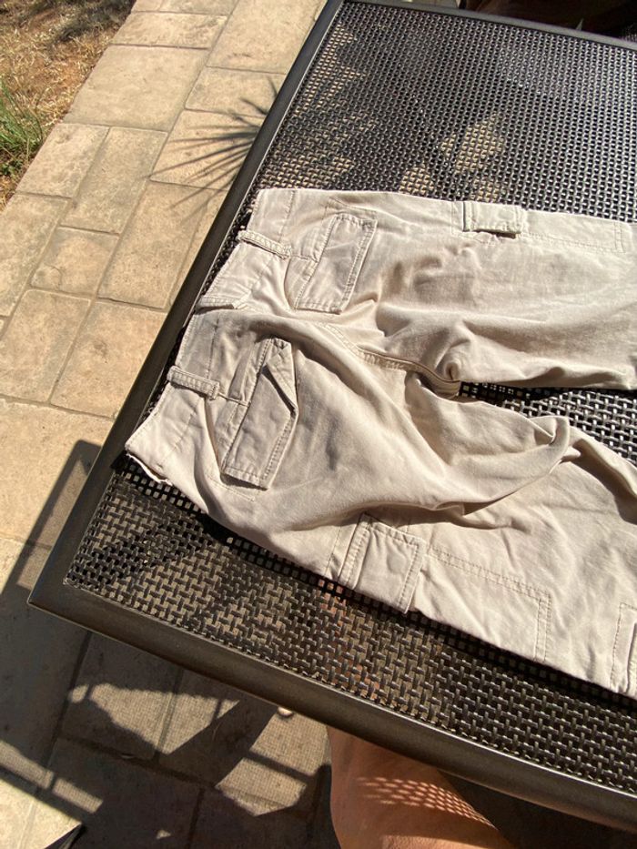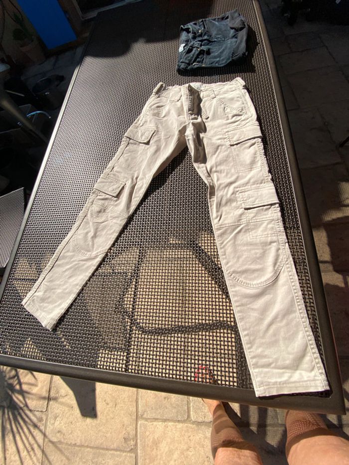 Joli pantalon, façon reporter nombreuses poche, coton, beige, taille 36 S