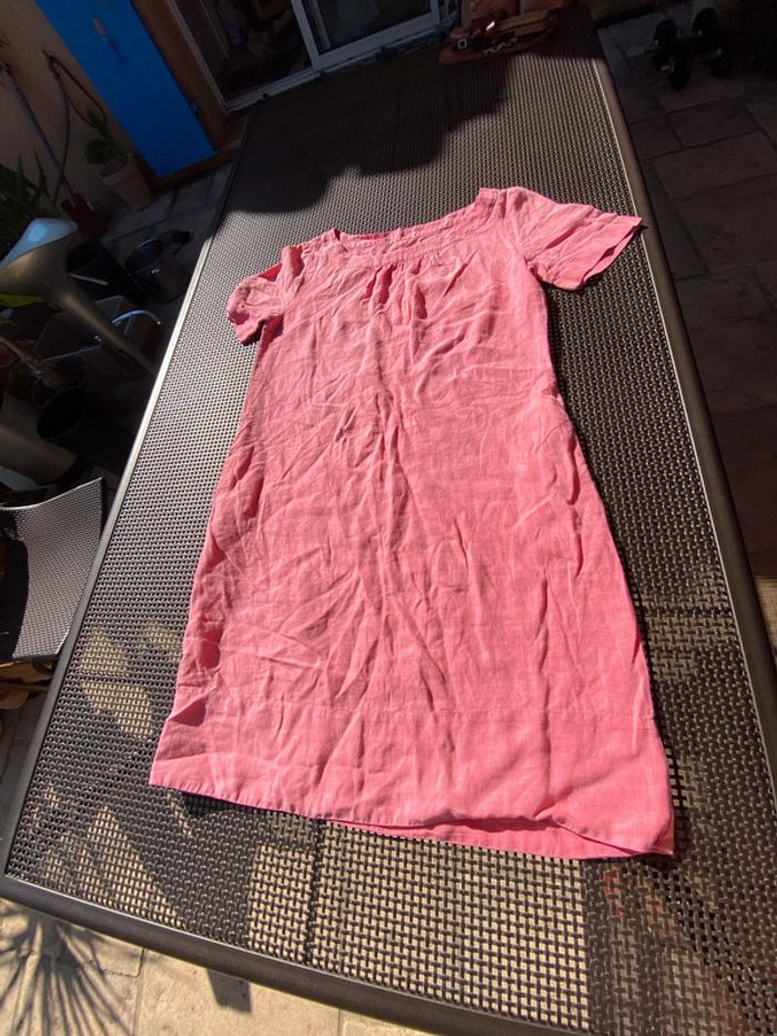 Belle robe en lin, rose avec poche, taille un - photo numéro 2