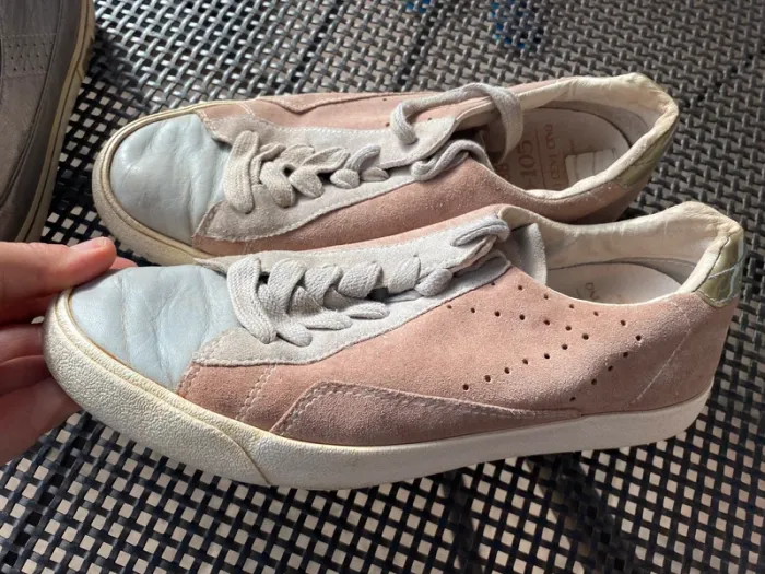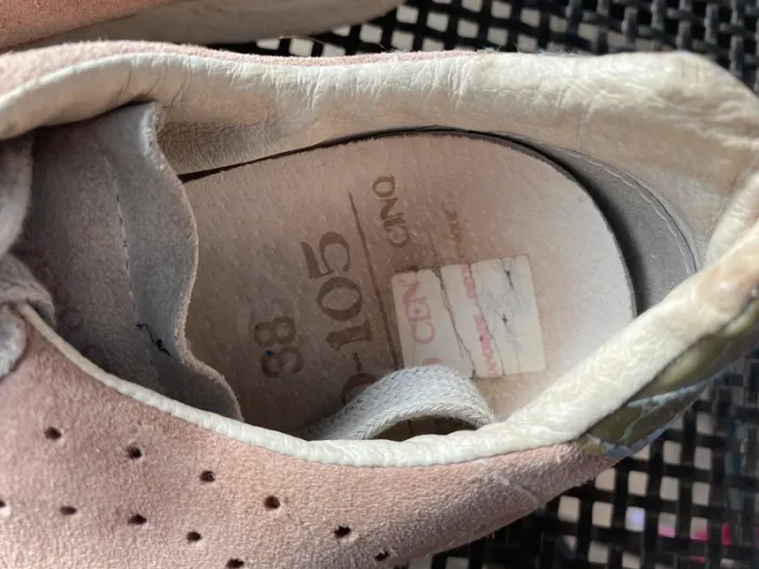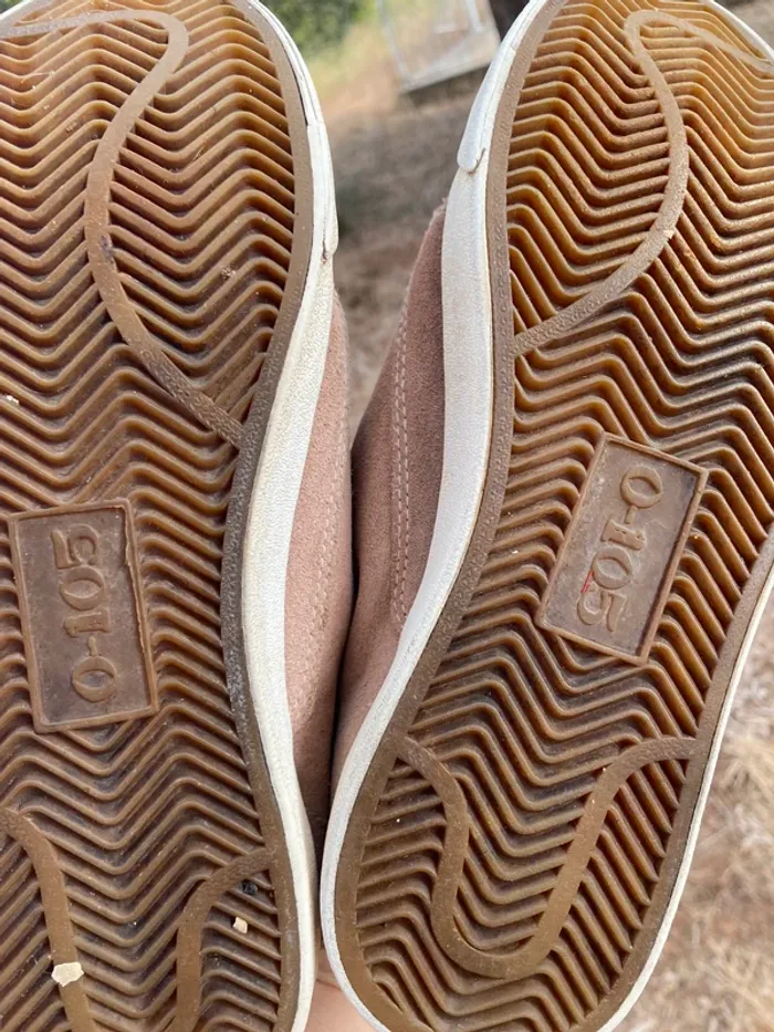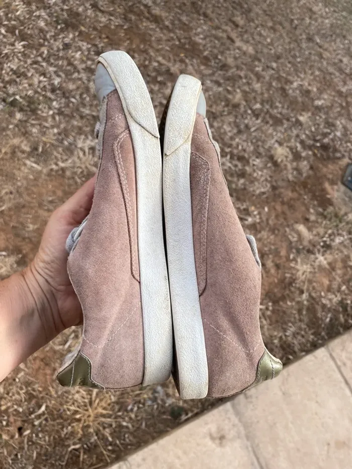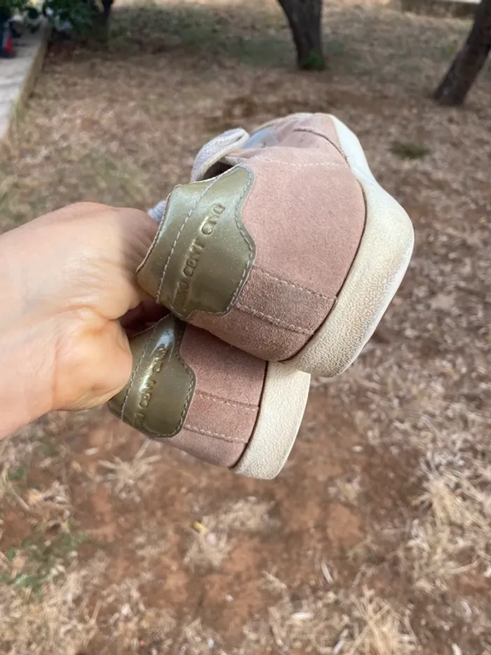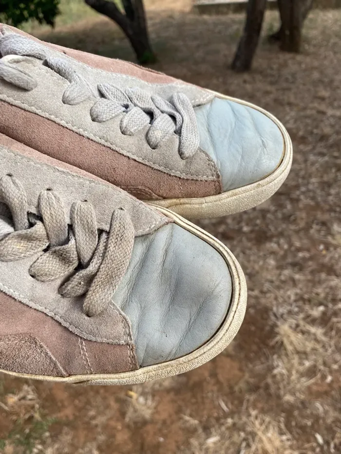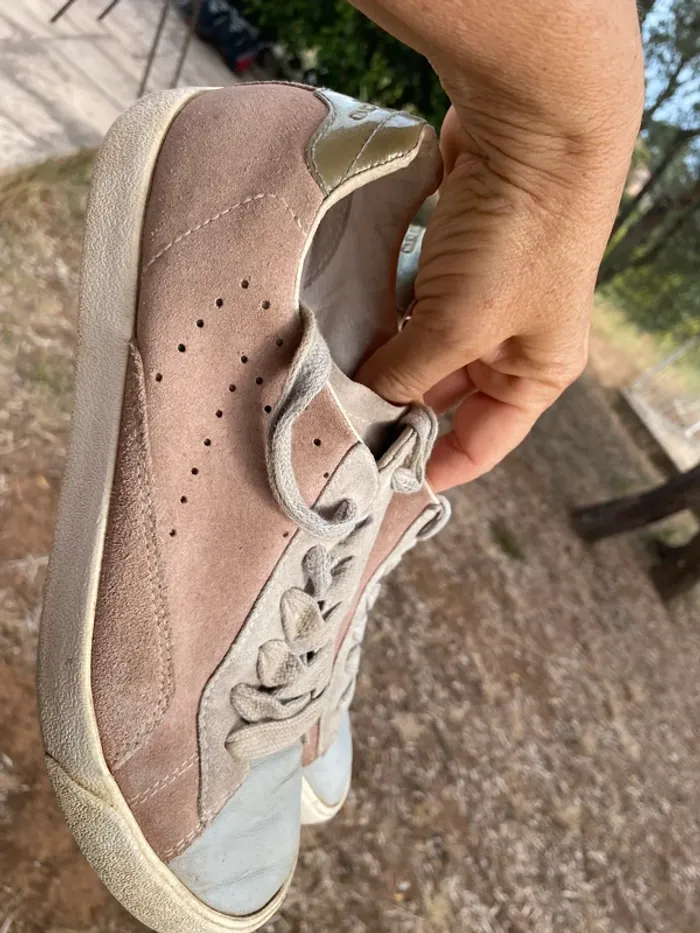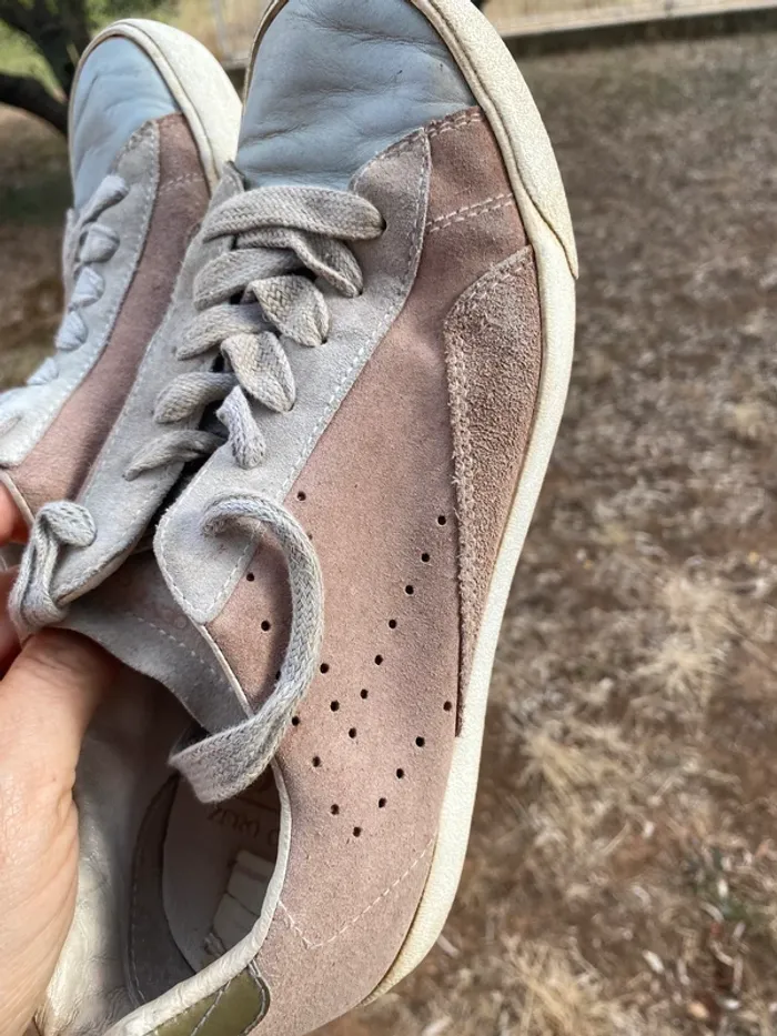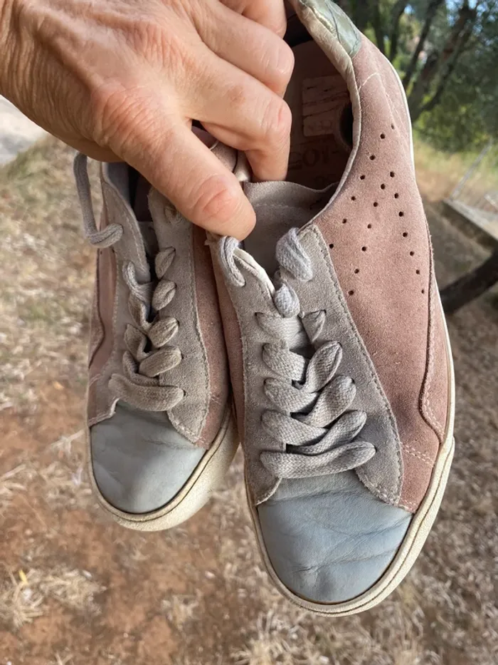 Baskets cuir O-105 ·0-105 Marque0-105 Taille 38 Très bon état Matière Cuir nubuck Couleur Rose, Gris Belles baskets cuir beige rose et