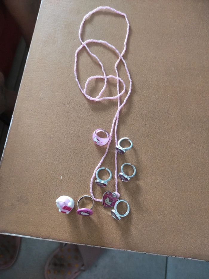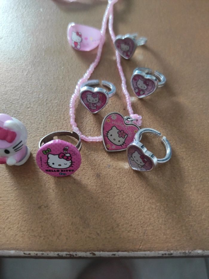 Comme neufs. Le lot comporte 6 bagues, 1 collier et une mini figurine #tometdinehellokitty