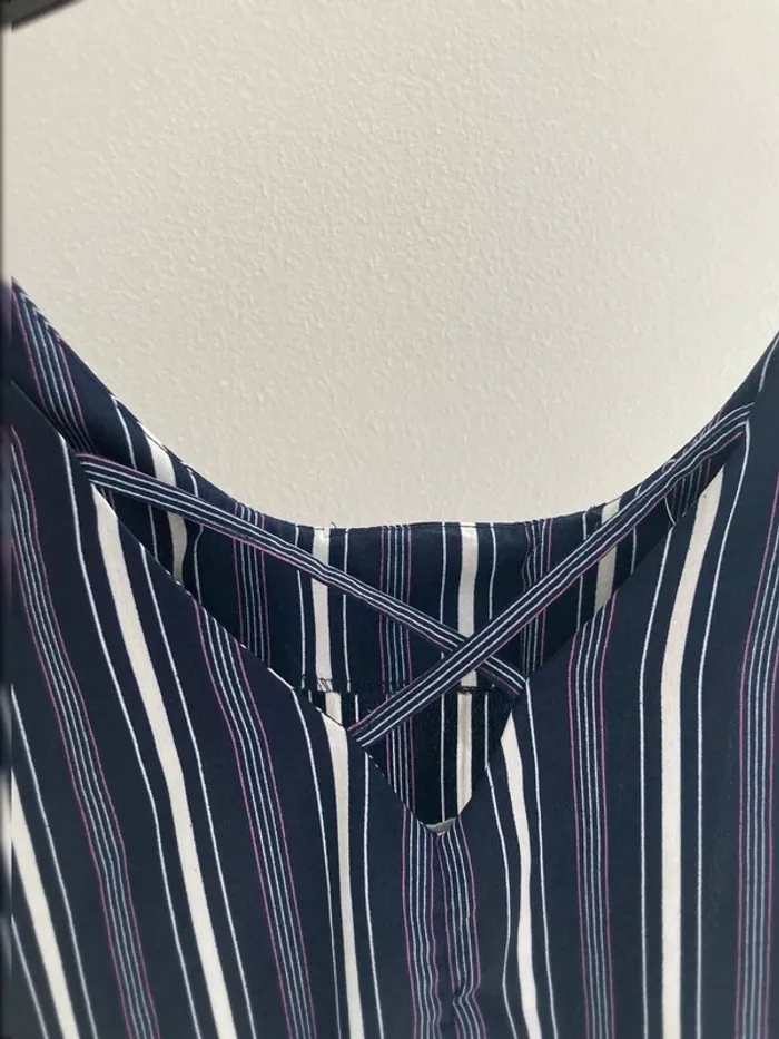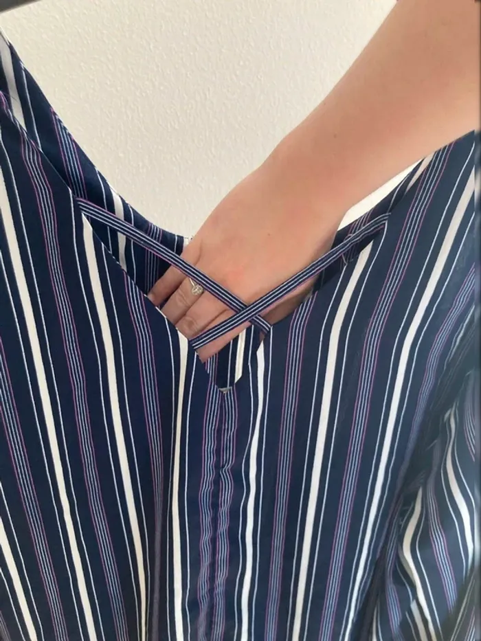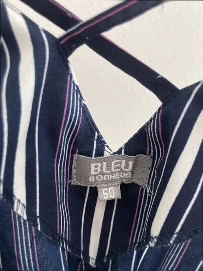 Bleu bonheur Taille 50 Couleur bleu à rayures blanches et rose Neuf #taille50_femme_laurinabrgt