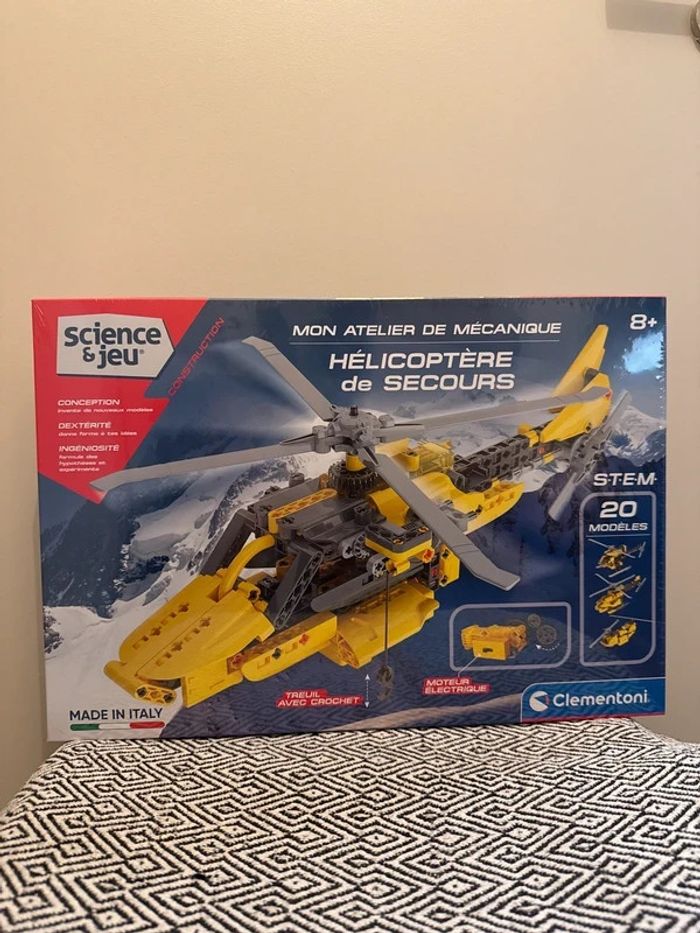 Vendeur professionnel Prêt pour des missions de sauvetage en haute montagne ? Dans ce coffret Mon atelier Mécanique, un modèle de d'hélicoptère à assembler et à découvrir dans ses moindres détails grâce à des composants solides pour se familiariser avec la mécanique et l'ingénierie aérienne. Cet atelier de construction permet aux enfants de stimuler leur créativité et leur imagination. En assemblant les 250 composants, votre enfant peut tester ses idées et vérifier si ses solutions sont correctes ou si elles doivent être améliorées. Le monde de l'ingénierie et de la mécanique incite les enfants à développer des concepts et à tester leurs idées pour créer leurs bateaux préférés. De nombreux composants pour construire 20 modèles et applications techniques différents. Ce coffret de construction Clementoni contient : une cage porte satellites, des roues dentées, des vis sans fin, des pales et des rotors, pour aborder le monde de la mécanique de manière simple et amusante. A l'aide du treuil manuel, votre mission de sauvetage sera accomplie. Suivez les instructions du manuel illustré contenant des informations techniques et scientifiques sur la dynamique de vol, et téléchargez l'application gratuite avec des instructions 3D interactives pour tous les modèles. Une fois son hélicoptère monté, votre enfant pourra imaginer de nombreuses missions de sauvetage et des figures de vols spectaculaires ! Référence 8005125525591 À partir de 8 ans Expédition rapide