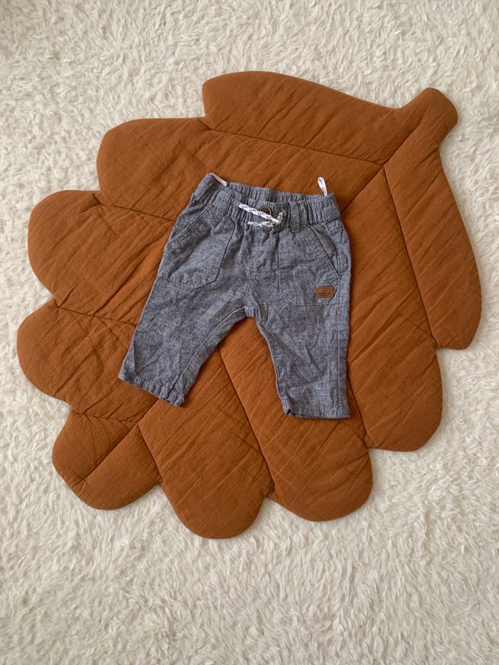 Hello ! Pantalon matiere assez légère bleu chiné, avec faux bouton et élastique taille, marque c&a, taille 3 mois
