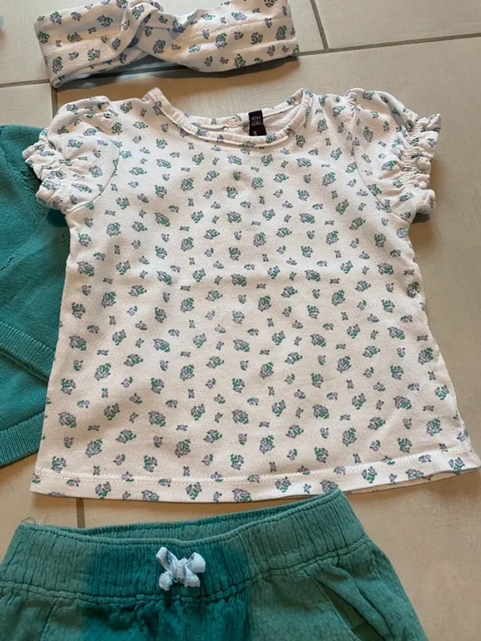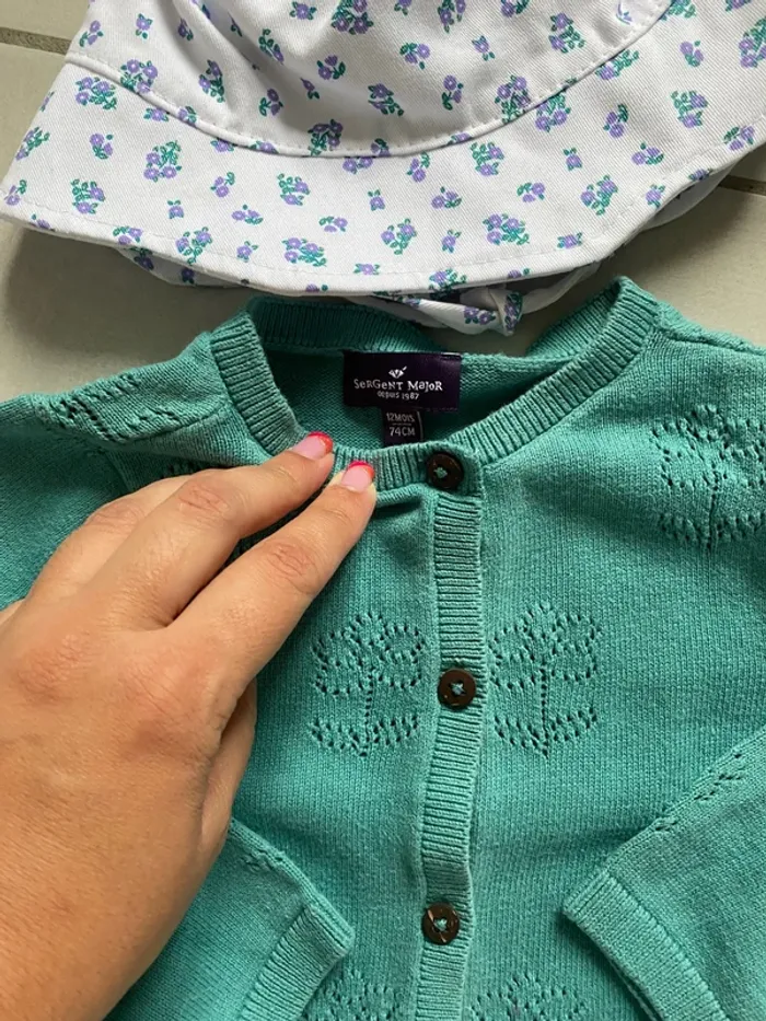 Ensemble Sergent Major Vert de tilleul Taille 12 mois Chapeau T2 Très bon état