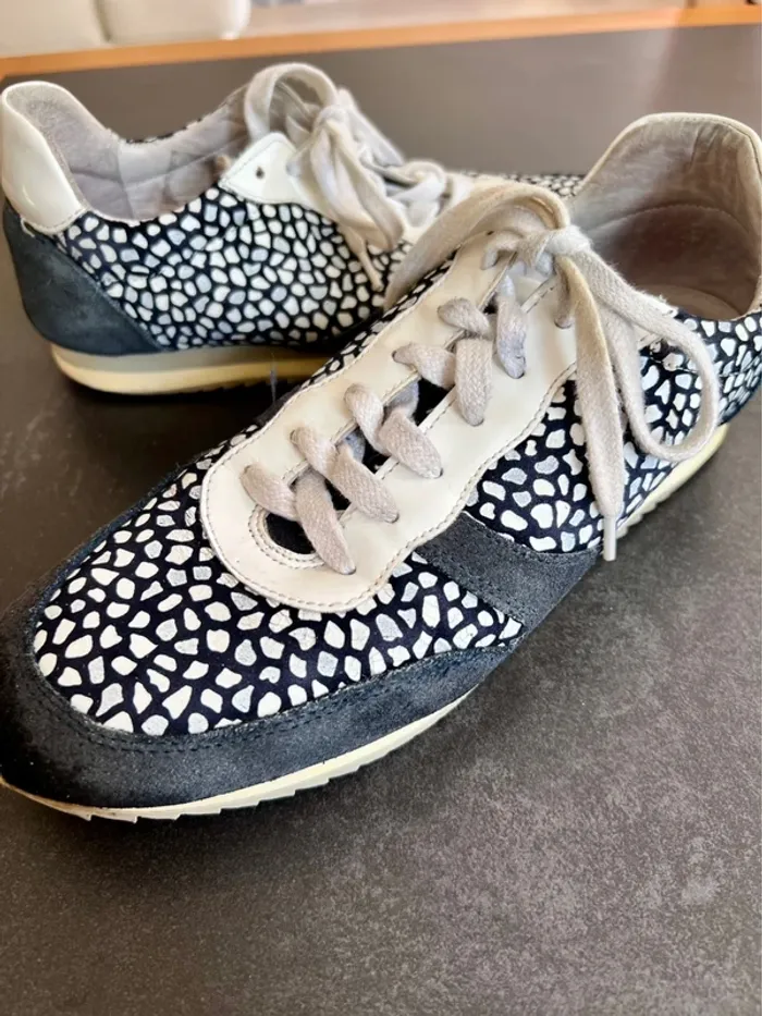Superbes baskets tout cuir pointure 40 marine et blanche Très bon état #basketscuir #basketcuir #basket40 #baskets40 #chaussurecuir40 #mode40 #pointure40 #basketdeville