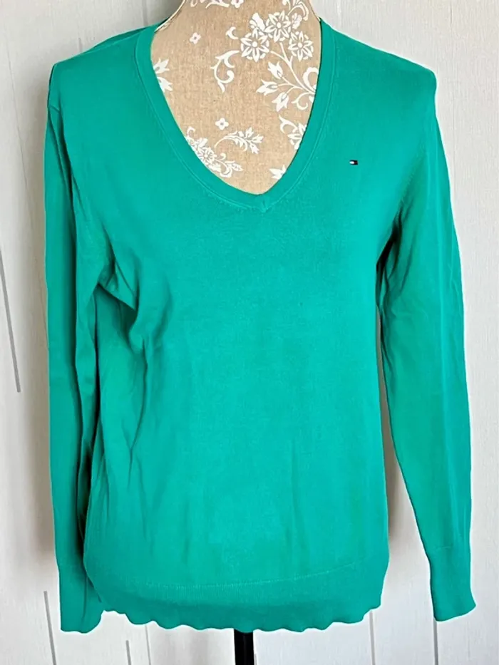Joli pull taille 40 vert lumineux Très bon état #pulltaille40 #pullvert40 #tommyhilfiger #mode40