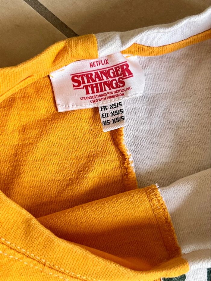 T shirt taille 36 blanc orange Très bon état #tshirtstrangerthings #tshirt36 #strangerthings