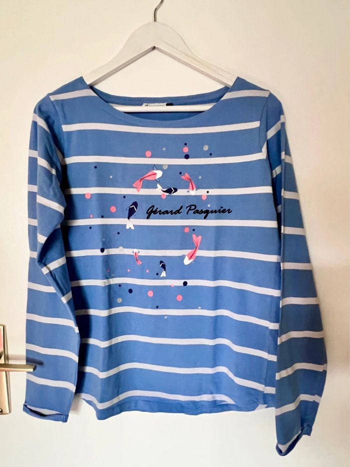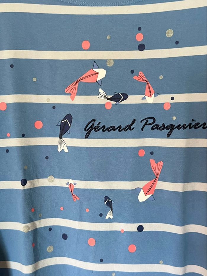 Joli t shirt taille 40 bleu à motif poissons Très bon état #tshirt40 #gerardpasquier #mariniere #mode40 #fashion #poissons #vintage