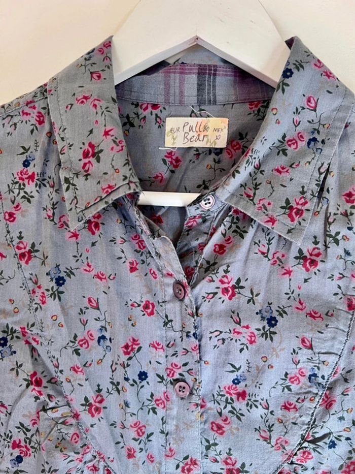 Jolie chemise taille 40 fleurie et gris/bleu Parfait état #chemise40 #pullandbear40 #mode40 #fashiongirl #fashionlarge