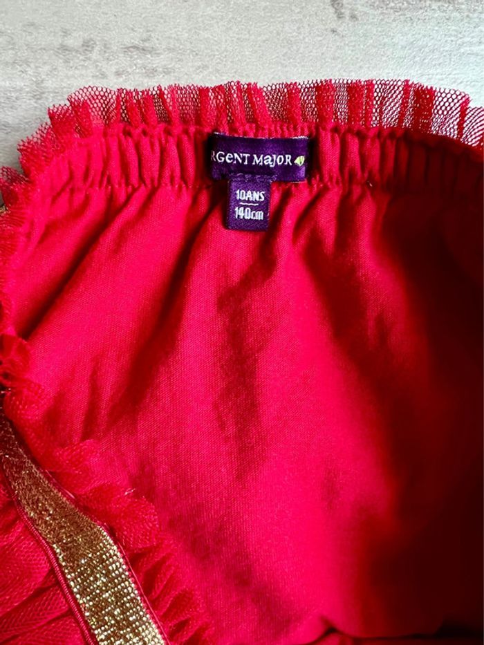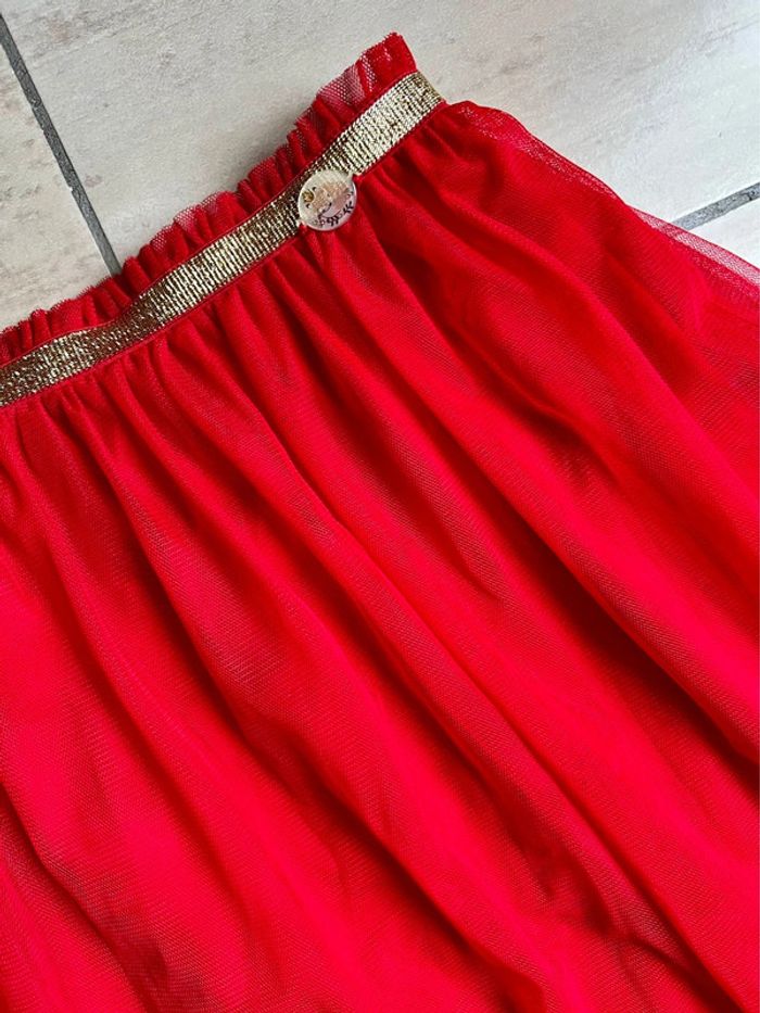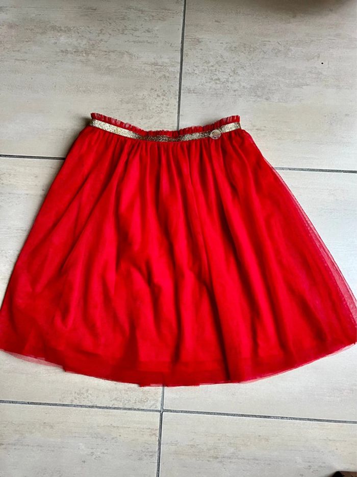 Superbe jupe taille 10 ans rouge avec tule par dessus- ceinture dorée Robe 10 ans de fête Mise 1x, comme neuve #jupe10ans #jupe10ansrouge #jupe10ansdefete #party10years #habitdefete10ans #mode10ans #fille10ans