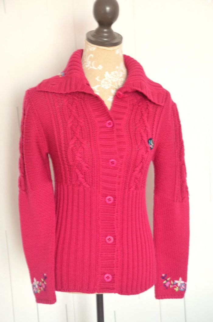 sublime gilet 12 ans framboise 50% laine comme neuf #veste12ans #gilet12ans #chipie12ans #hiver12ans #mode12ans #girl12year