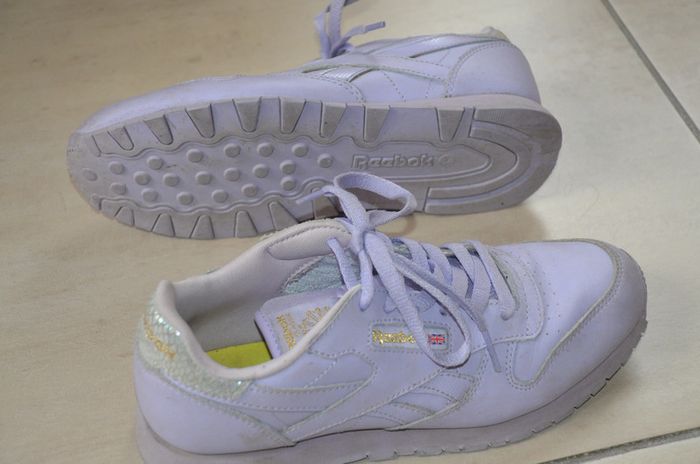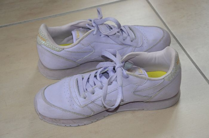 belles baskets pointure 36 mauve en cuir Ortholite reebok Tres bon etat! #basket36 #baskets36 #basketscuir36 #pointure36 #fille36 #femme36 #basketreebok36 #cuir #shoes36eu #fashiongirls #reebok