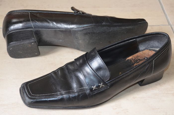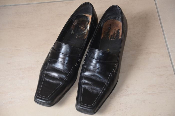 chaussure 40 noir en cuir de qualité, en bon etat, il faut changer la semelle et le bout de la chaussure est legerement éraflé #cuir40 #chaussure40 #40