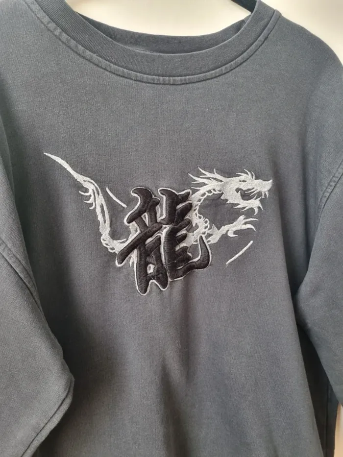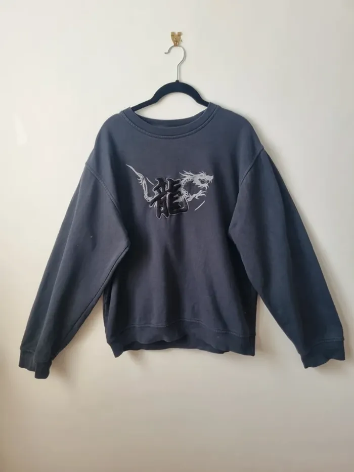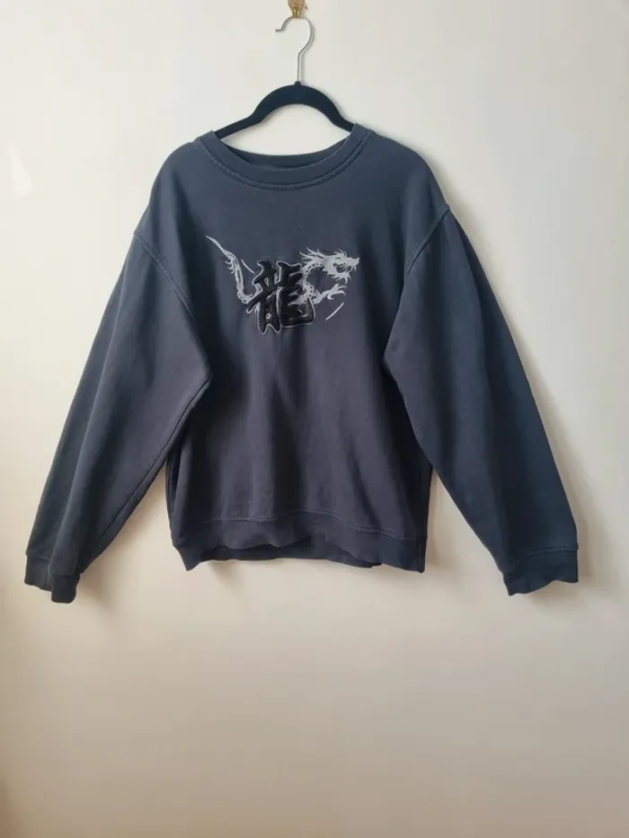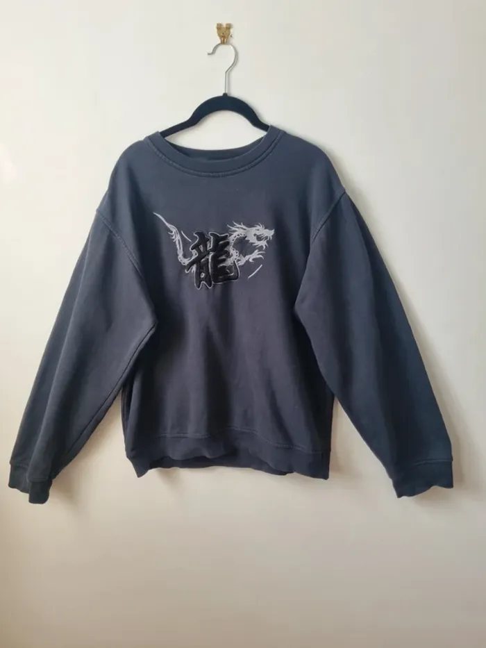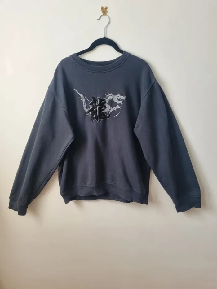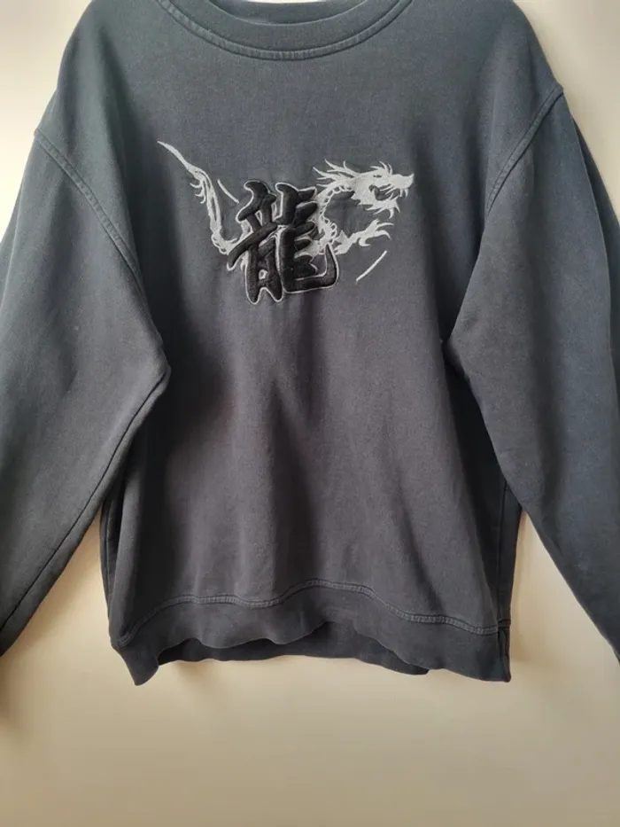 Magnifique sweat Clockhouse en coton 100 % coton Beau dragon brodé dessus en gris Sweat gris anthracite En bon état Marque : Clockhouse Resseré aux manches Taille XL Dimensions : - Largeur épaules : 54 cm - Longueur dos : 66 cm - Largeur aiselles : 60 cm - Largeur taille : 60 cm