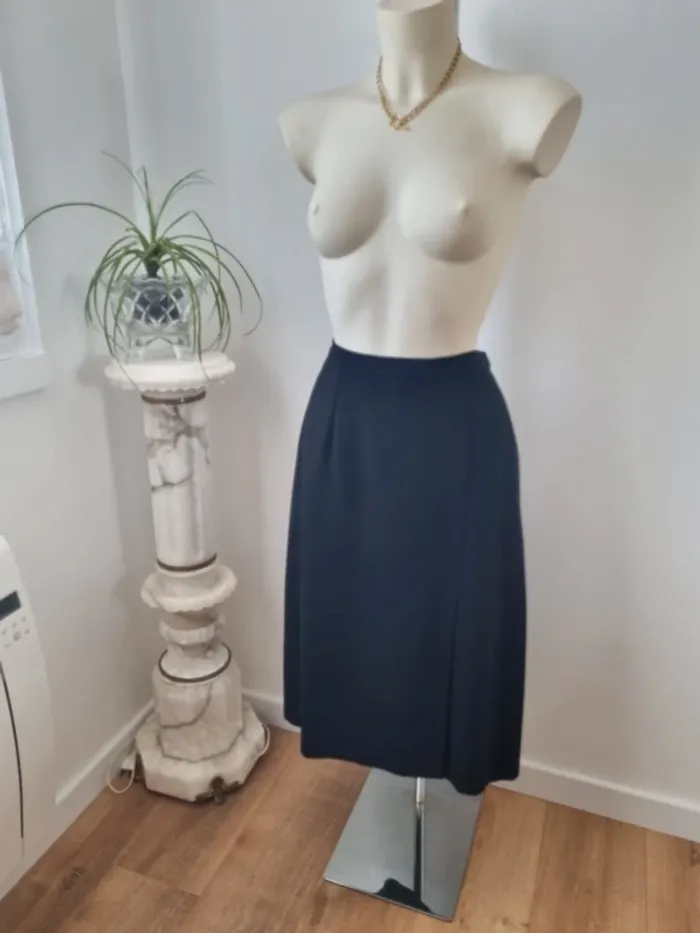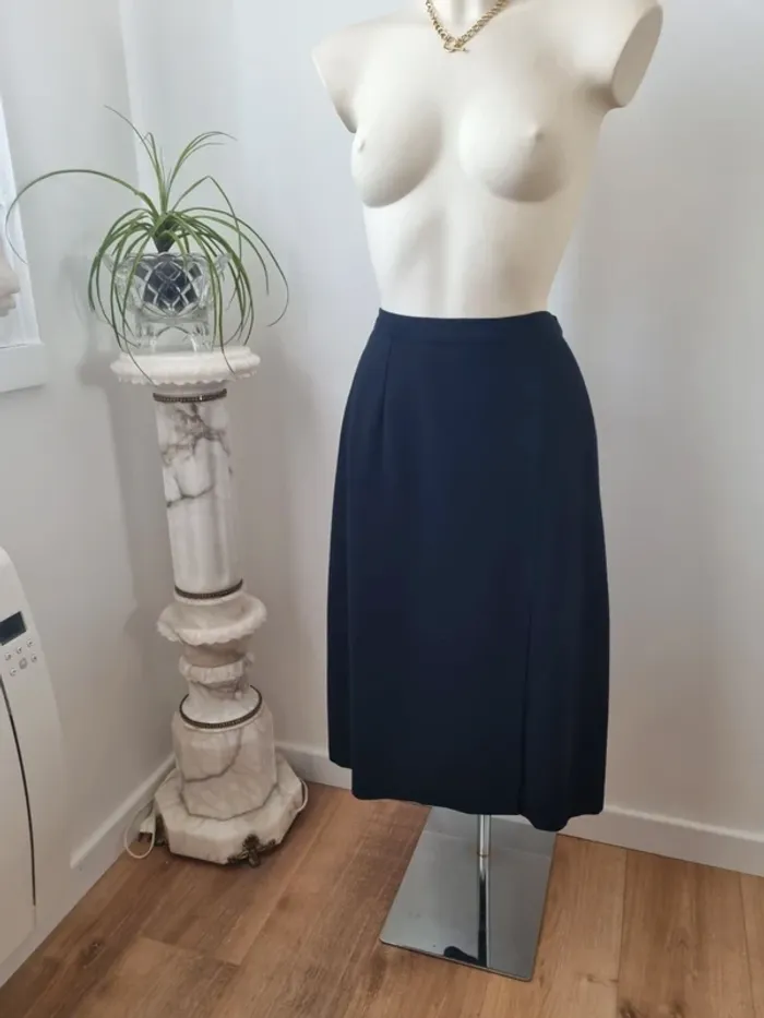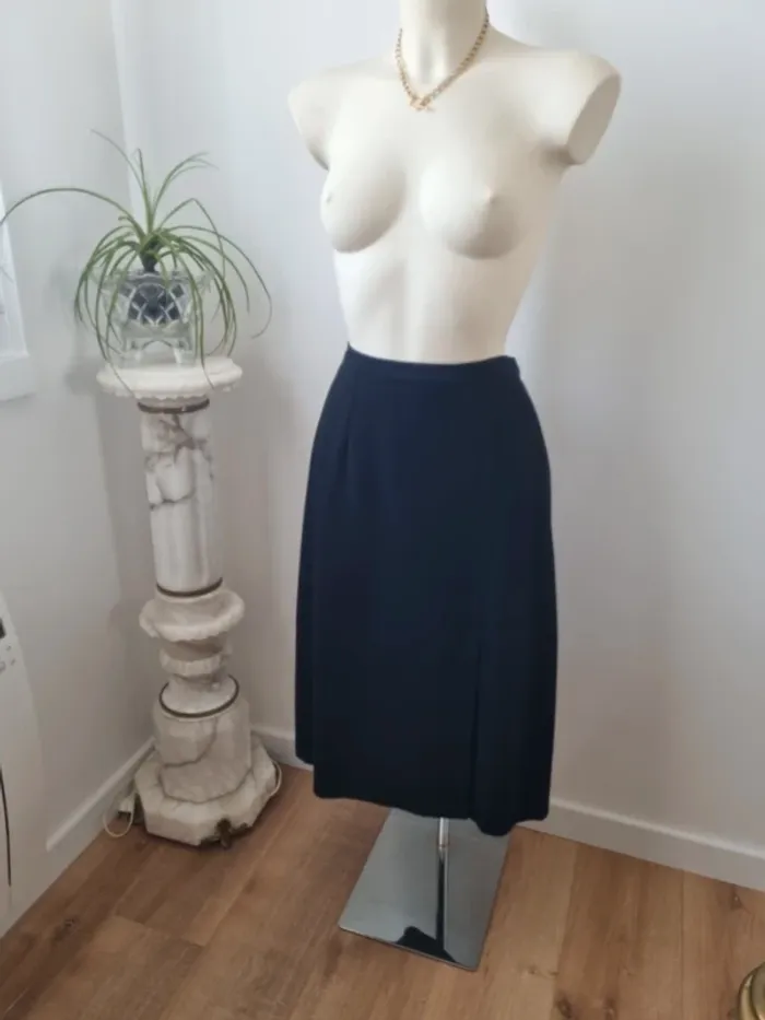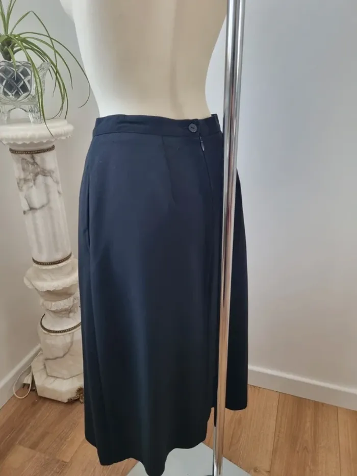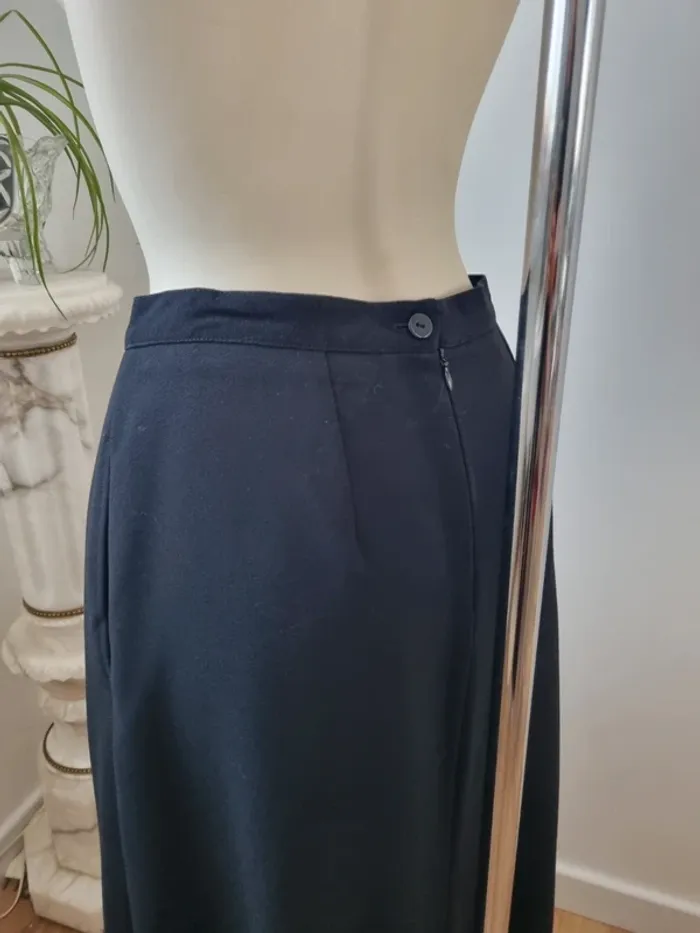 Magnifique jupe mi-longue noir Vintage, année '80 En parfait état Elle est doublé a l'intérieur 50 % polyester 50 % viscose Fente sur le côté Bouton et fermeture éclair a l'arrière de la jupe 2 poches sur les côtés Ancienne marque : Adèle Joris Taille 42,44/ XL, XXL Vérifiez vos dimensions ⤵️ Dimensions : - Largeur taille : 43 cm - Longueur : 75 cm
