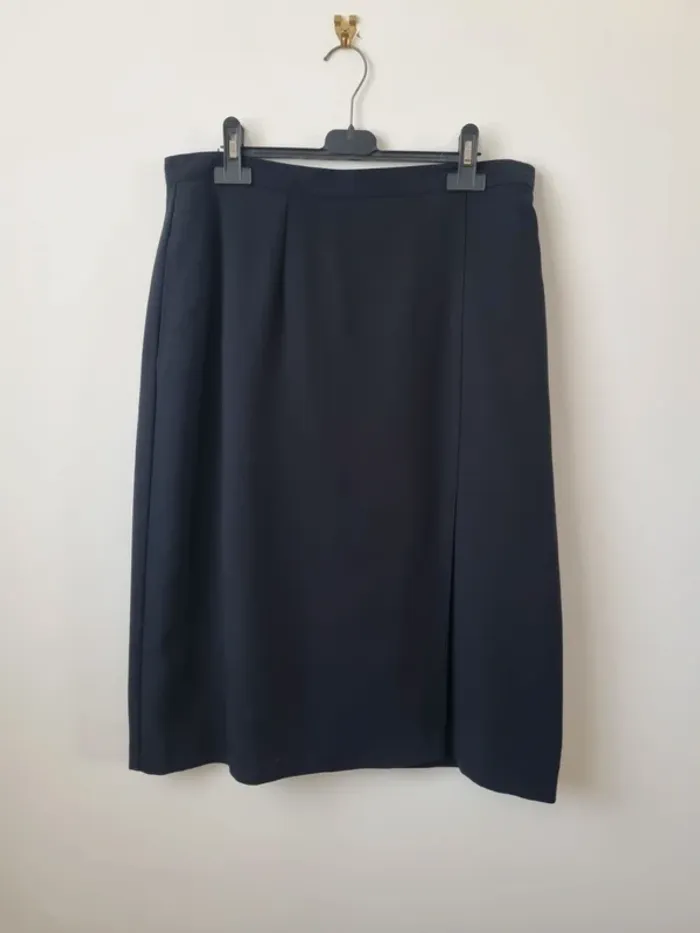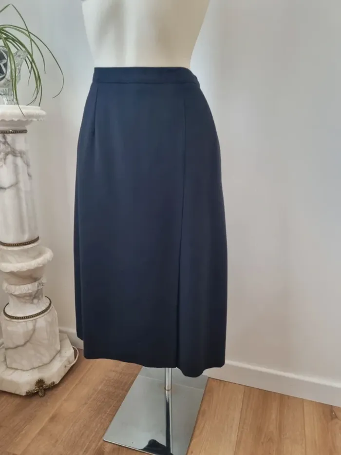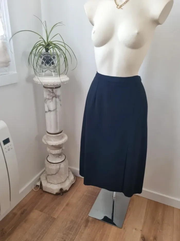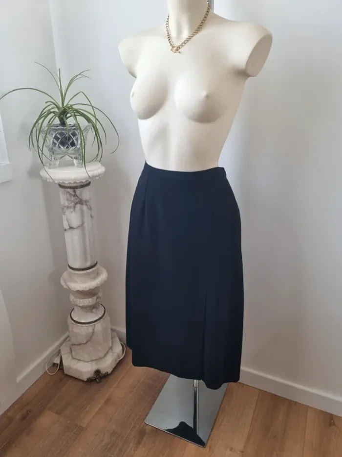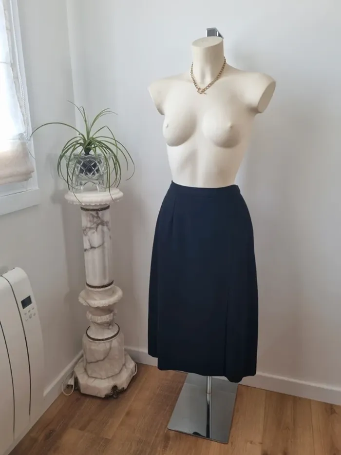 Magnifique jupe mi-longue noir Vintage, année '80 En parfait état Elle est doublé a l'intérieur 50 % polyester 50 % viscose Fente sur le côté Bouton et fermeture éclair a l'arrière de la jupe 2 poches sur les côtés Ancienne marque : Adèle Joris Taille 42,44/ XL, XXL Vérifiez vos dimensions ⤵️ Dimensions : - Largeur taille : 43 cm - Longueur : 75 cm
