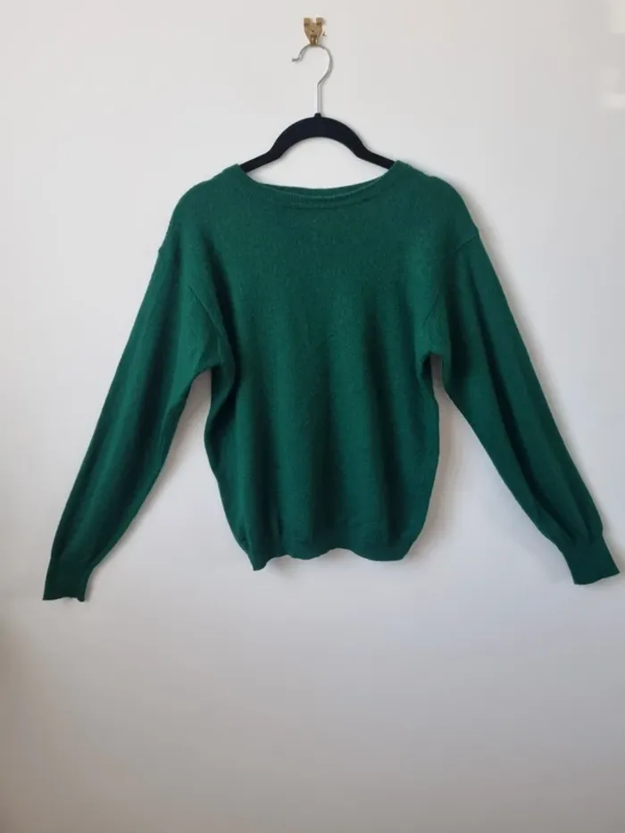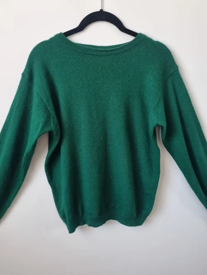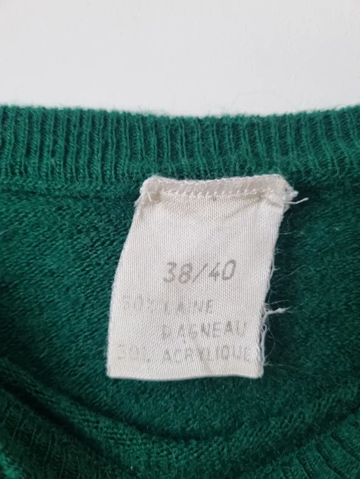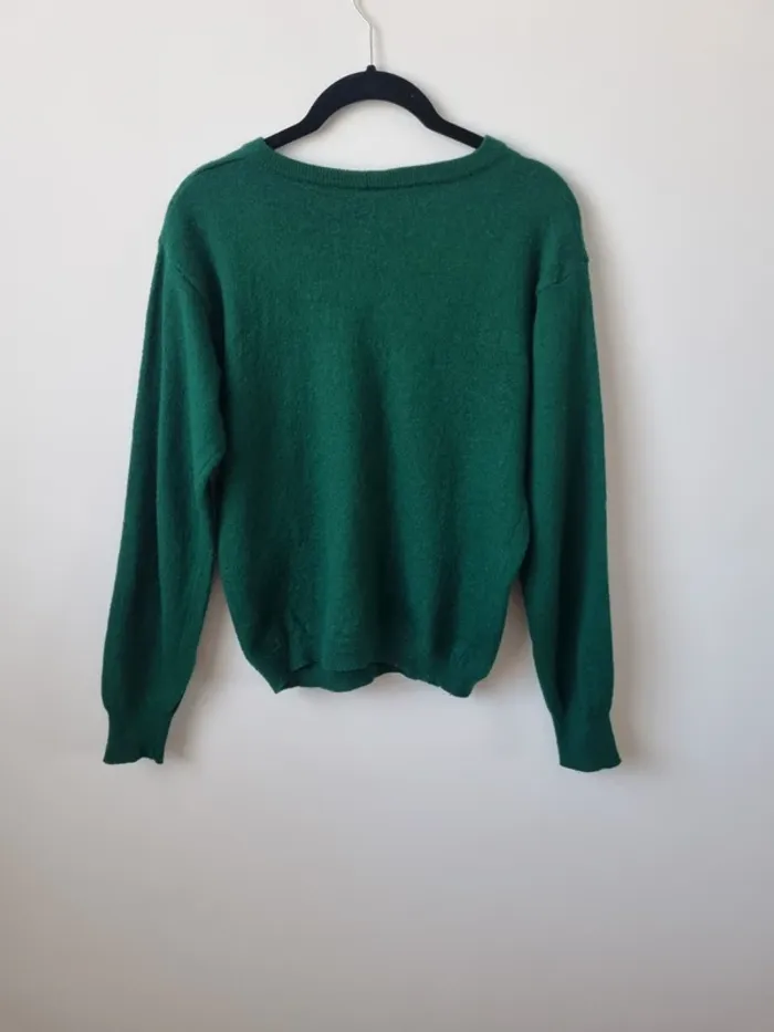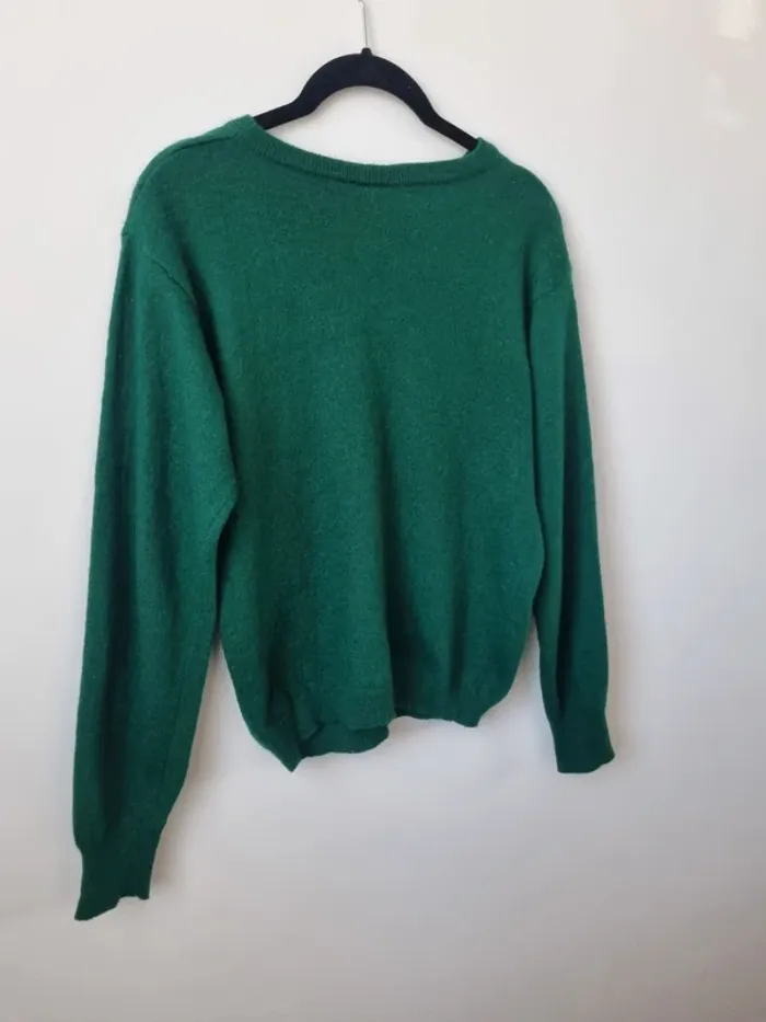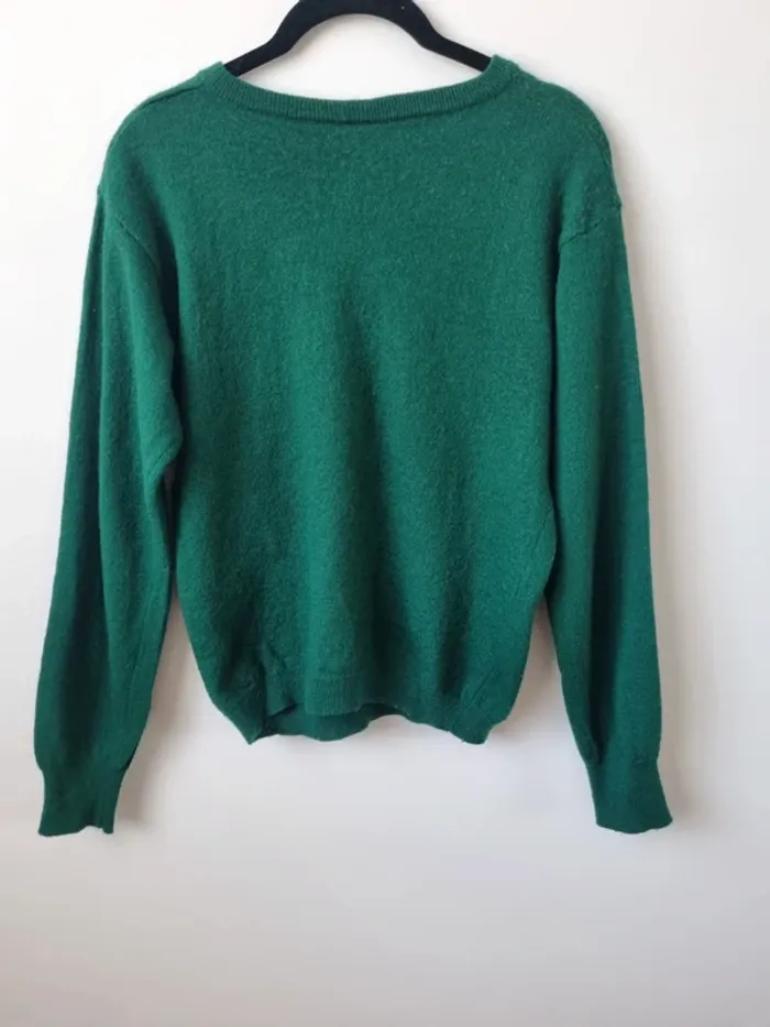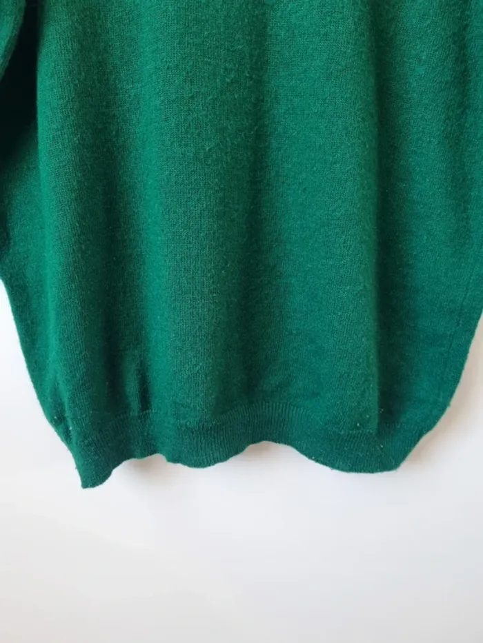 Magnifique pull en laine vert sapin Vintage, année '80 50 % laine d'agneau 50 % acrylique Taille indiqué 38-40 Mais correspond plus a une taille 34-36 Dimensions : - Largeur épaules : 50 cm - Longueur dos : 55 cm - Largeur taille : 53 cm - Largeur aiselles : 52 cm