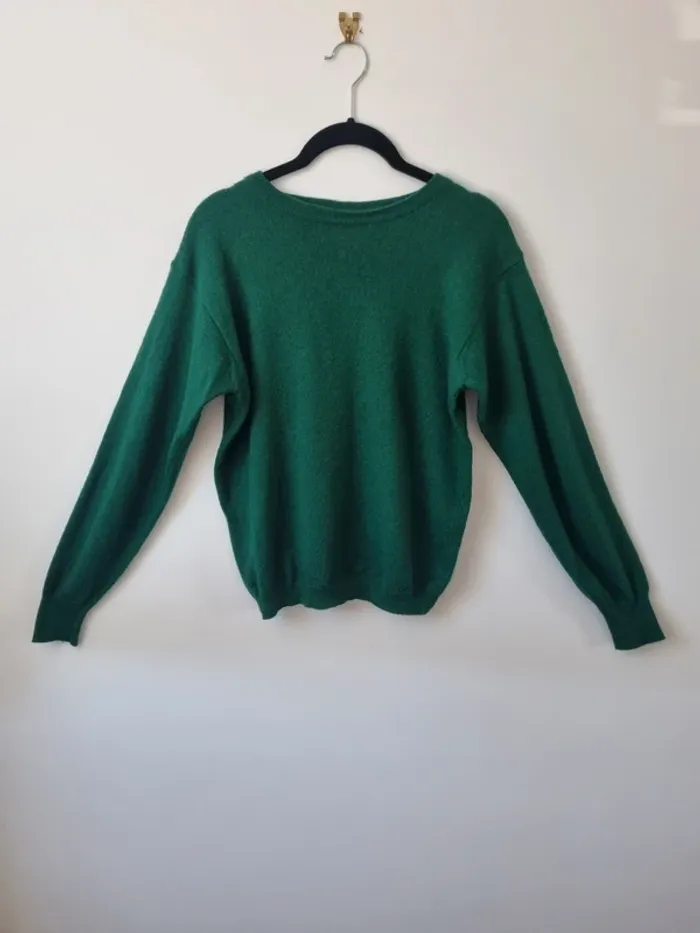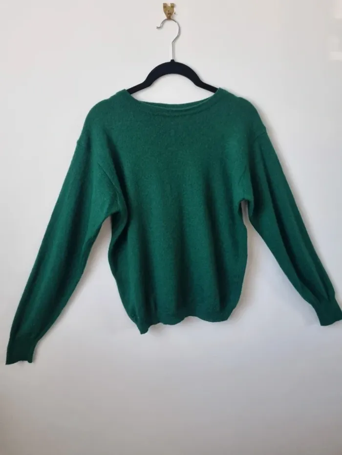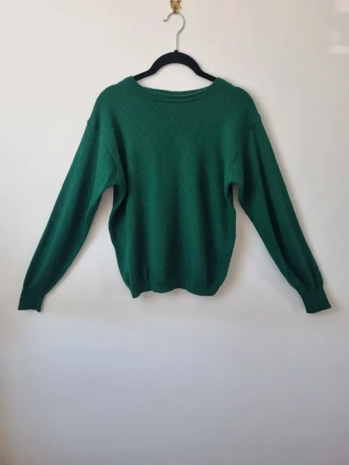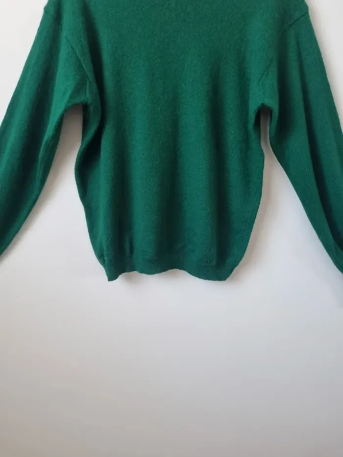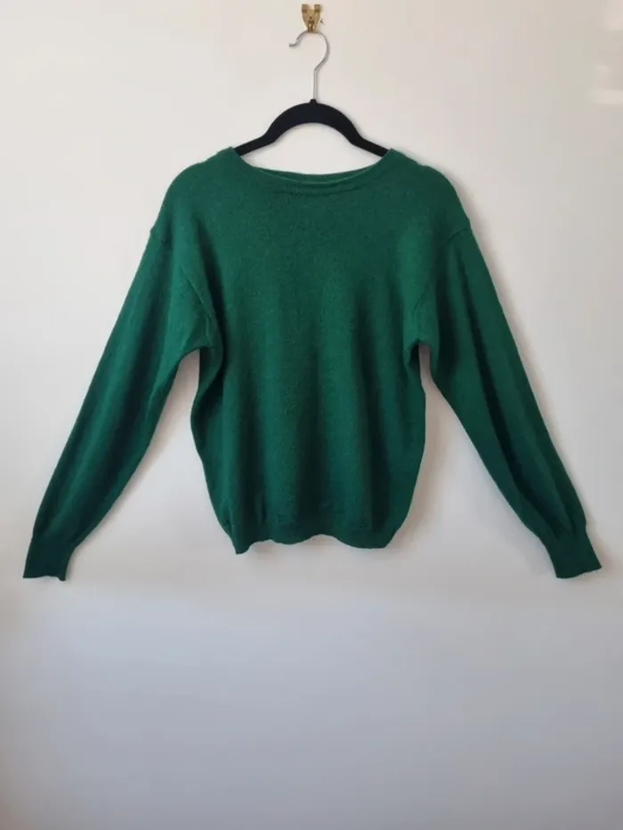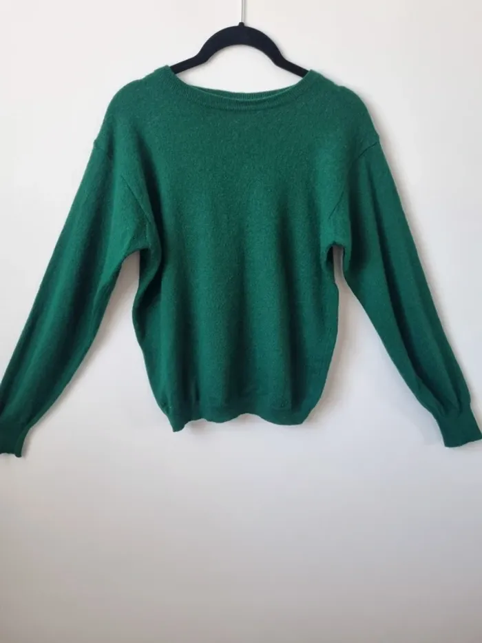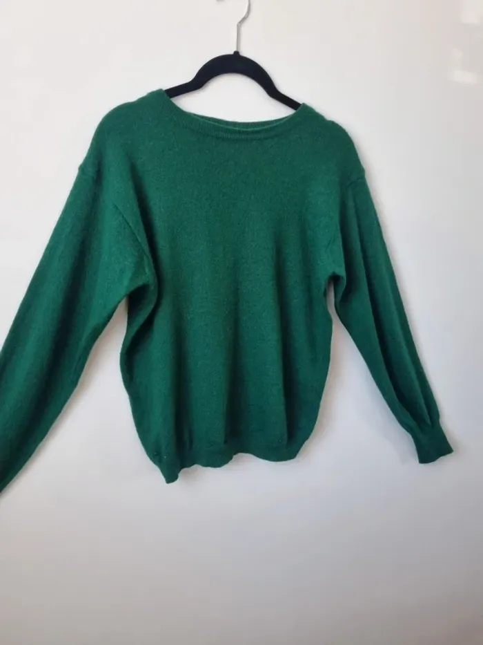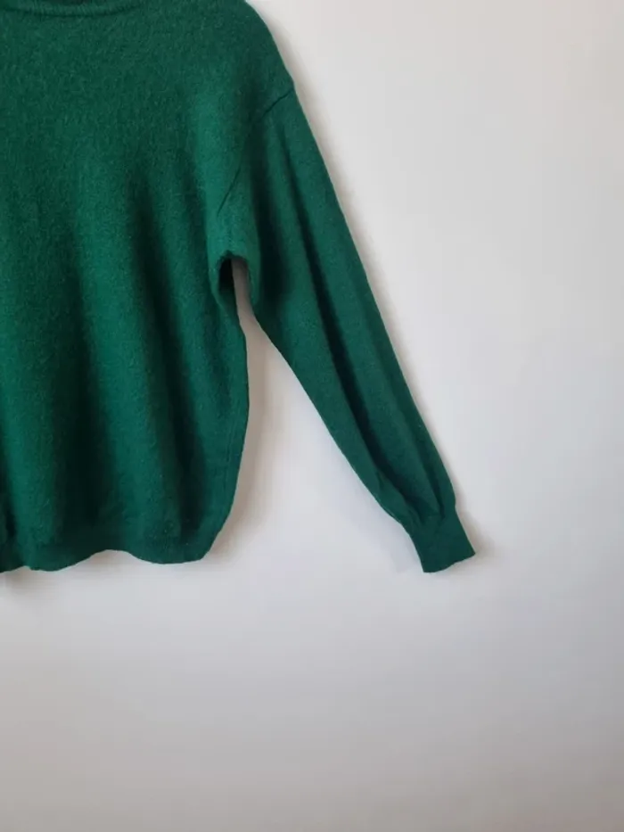 Magnifique pull en laine vert sapin Vintage, année '80 50 % laine d'agneau 50 % acrylique Taille indiqué 38-40 Mais correspond plus a une taille 34-36 Dimensions : - Largeur épaules : 50 cm - Longueur dos : 55 cm - Largeur taille : 53 cm - Largeur aiselles : 52 cm