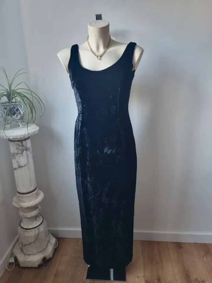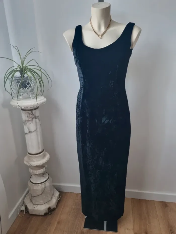 Robe longue en velours noir vintage - photo numéro 1