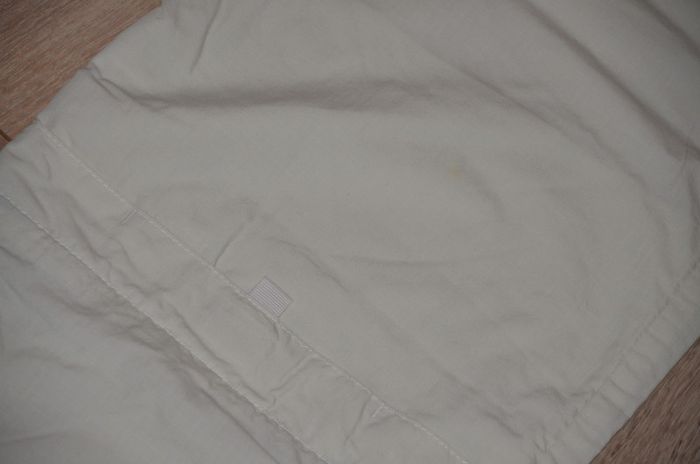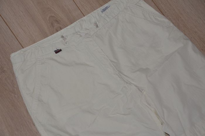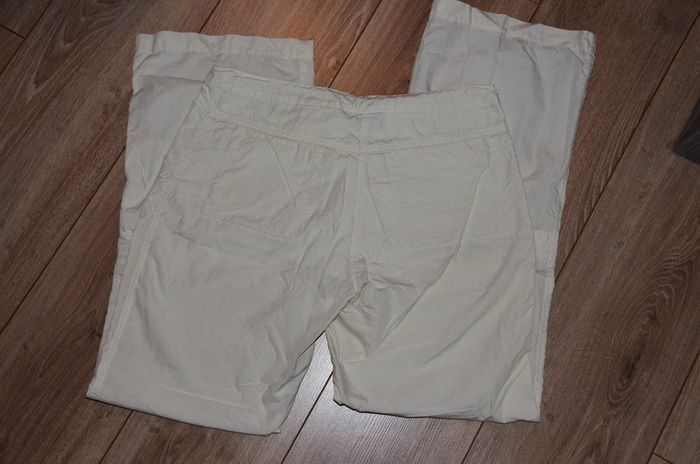 pantalon 40 blanc reglable a la taille, large en bas, une poche en bas d'une des jambes (voir photo). en bon etat