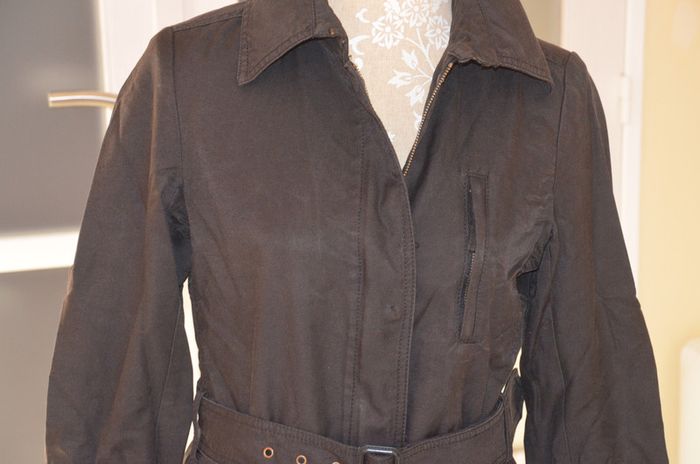 veste longue 38 noire avec ceinture, fermeture eclair et bouton, en tres bon etat (veste demi saison) #parka38 #blouson38 #veste3840