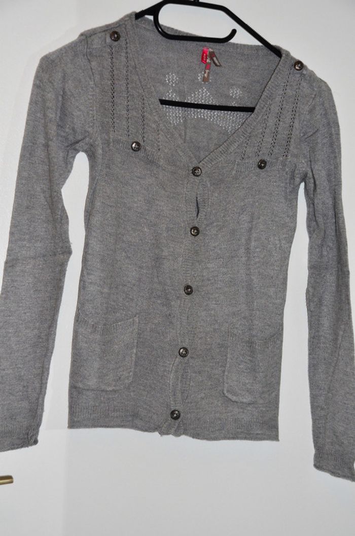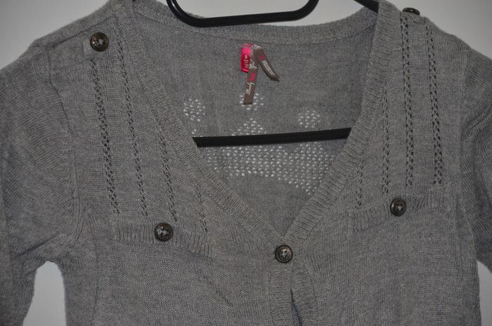 joli gilet 8 ans gris avec 11% laine et 5% angora. a l'arriere le dessin d'une couronne. tres bon etat #gilet8ans #8ansfille