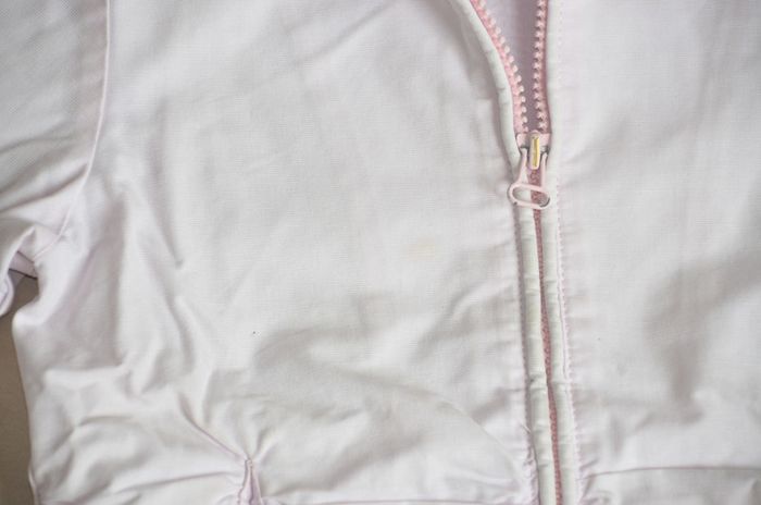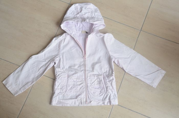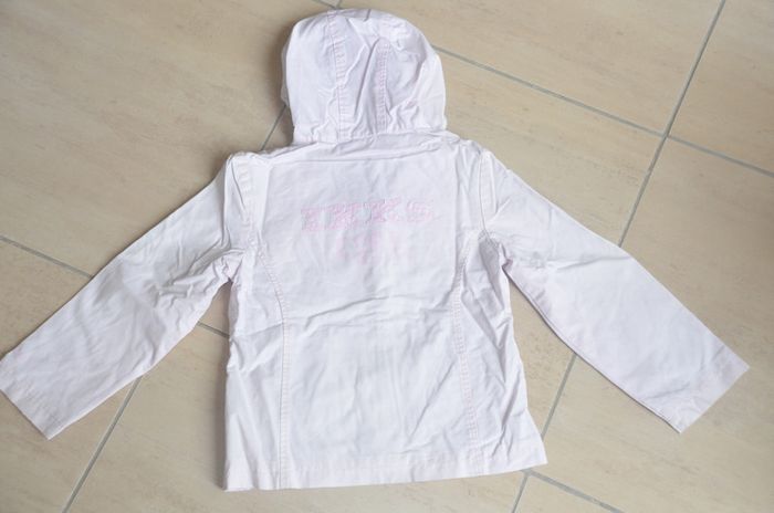 jolie veste ikks 6 ans rose pale, logo a l'arriere, avec capuche. de minuscules taches sur les manches et une ombre devant. original. bon etat #veste6ans #blouson6ans #coupevent6ans #ikks6ans #fille6ans