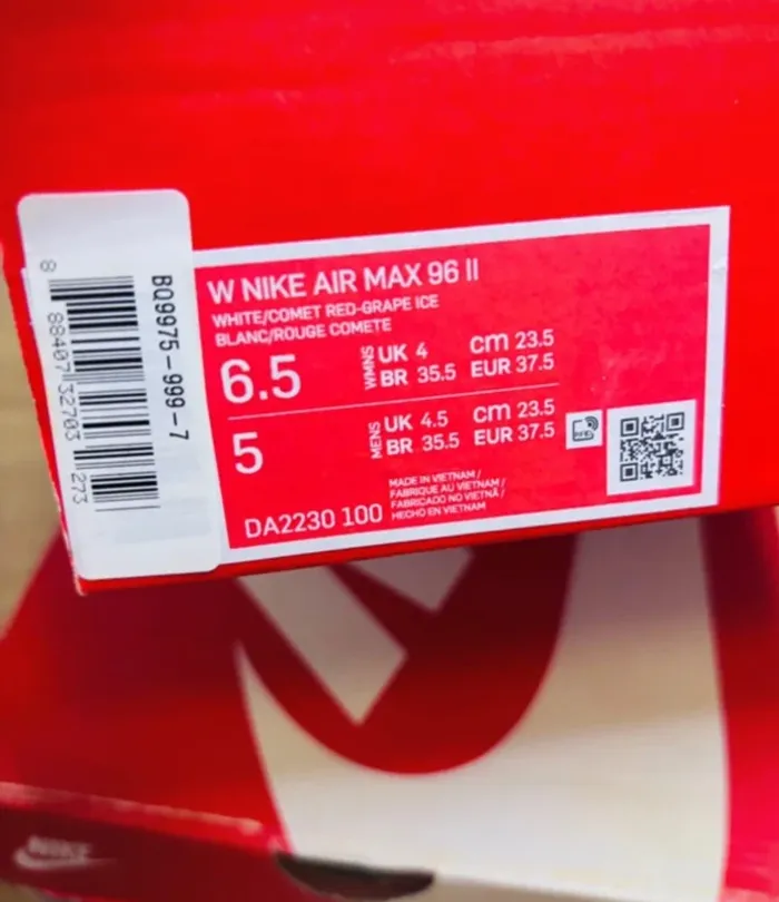 Nike Air Max 96 II Cherry White Comet Red-Grape Ice - 📏 Taille : 37.5 - 🏷️ Marque : Nike - 🌿 Matières : Cuir Mesh - 🎨 Couleur : Blanc Noir - 📦 État : 10/10 ds - ⚠️ Boite d’origine mais sans le couvercle #Nike #AirMax96 #AirMax96II #AirMax96ii #NikeTn #NikeAirMaxPlusBaltic #TnBaltic #AirMaxPlus #Sneakers #Footwear #Corduroy #AM90 #Streetwear #Sportswear #Comfort #Style #Shoes #Fashion #Trend ##AirMax #Athleisure ##LightBone #Dore #PinkSolar #SolarFlare #CherryAirMax #NikeAirMax #NikeTn #AirMaxPlus #AirMaxTN #AirMax1 #TnAirMaxplus #AirMax90 #AirMax95 #Trend #Nike #NikeAirMax90 #AirMax90 #AirMax #BasketNike #BasketsNike #Sneakers #ChaussuresNike #ChaussuresFemme #Taille38 #GrisBlanc #Sneakerhead #LookSportif #Streetwear #UrbanStyle #AirMaxPremium #MeshSuede #LimitedEdition #HypeSneakers #VintedSneakers #VintedFind #FastShipping #AuthentiqueNike #AirMaxAddict #NikeOriginal #BasketsHomme #SportChic #AirMaxLife #AirMaxLover #NikeFrance