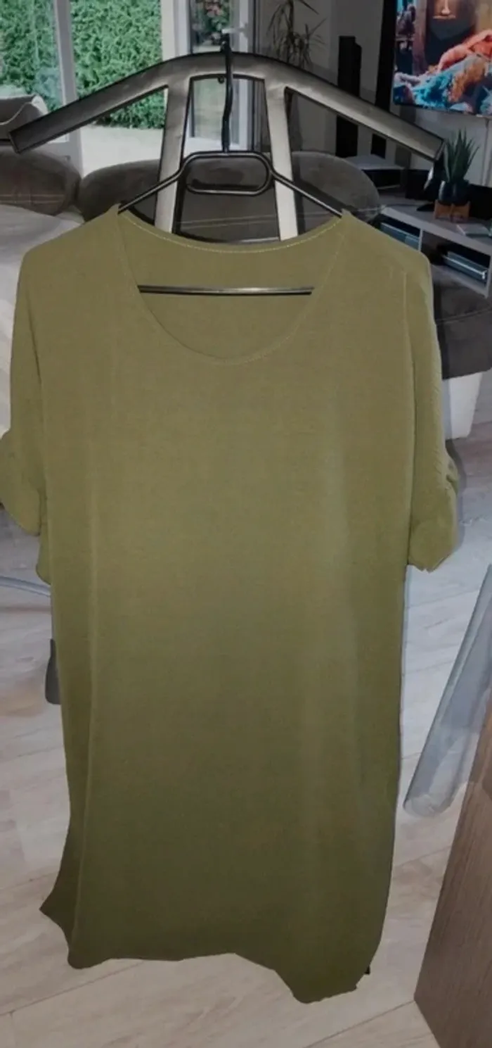 Robe kaki taille unique jusqu'au 46 neuve jamais portée. Froufrous sur les côtés. - photo numéro 2
